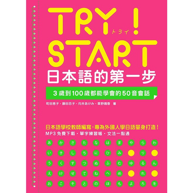 TRY! START 日本語的第一步: 3歲到100歲都能學會的50音會話 (附QRCode線上音檔)/町田恵子/ 藤田百子/ 向井あけみ/ 草野晴香 eslite誠品TRY! START 日本語的第一步: 3歲到100歲都能學會的50音會話 (附QRCode線上音檔)/町田恵子/ 藤田百子/ 向井あけみ/ 草野晴香 eslite誠品Language Learning & Dictionarieseslite 誠品