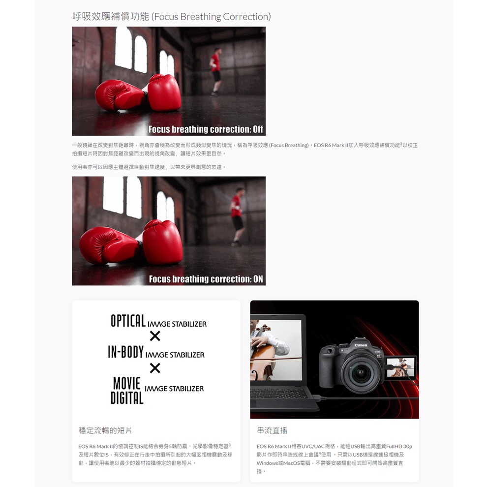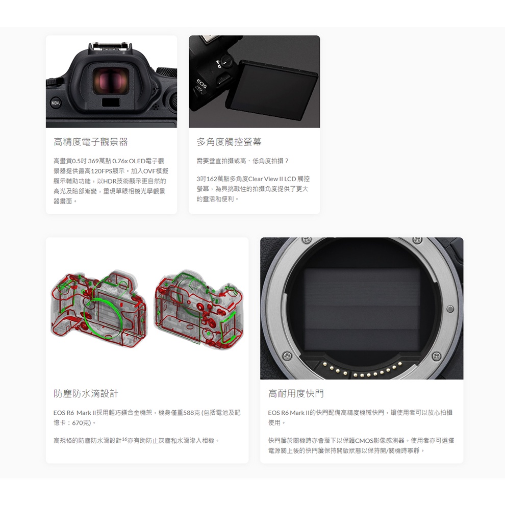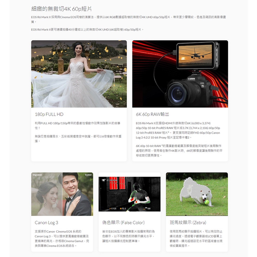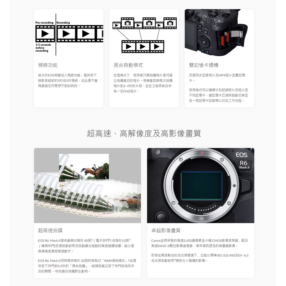 預購 Canon EOS R6 MARK II BODY 單機身 公司貨超值贈品組|基本配備組|豪華禮包組|原廠單機身|大光圈鏡組RF16-28mm f/2.8|大光圈鏡組RF28-70mm f/2.8Mirrorless CamerasCANON 品牌旗艦館