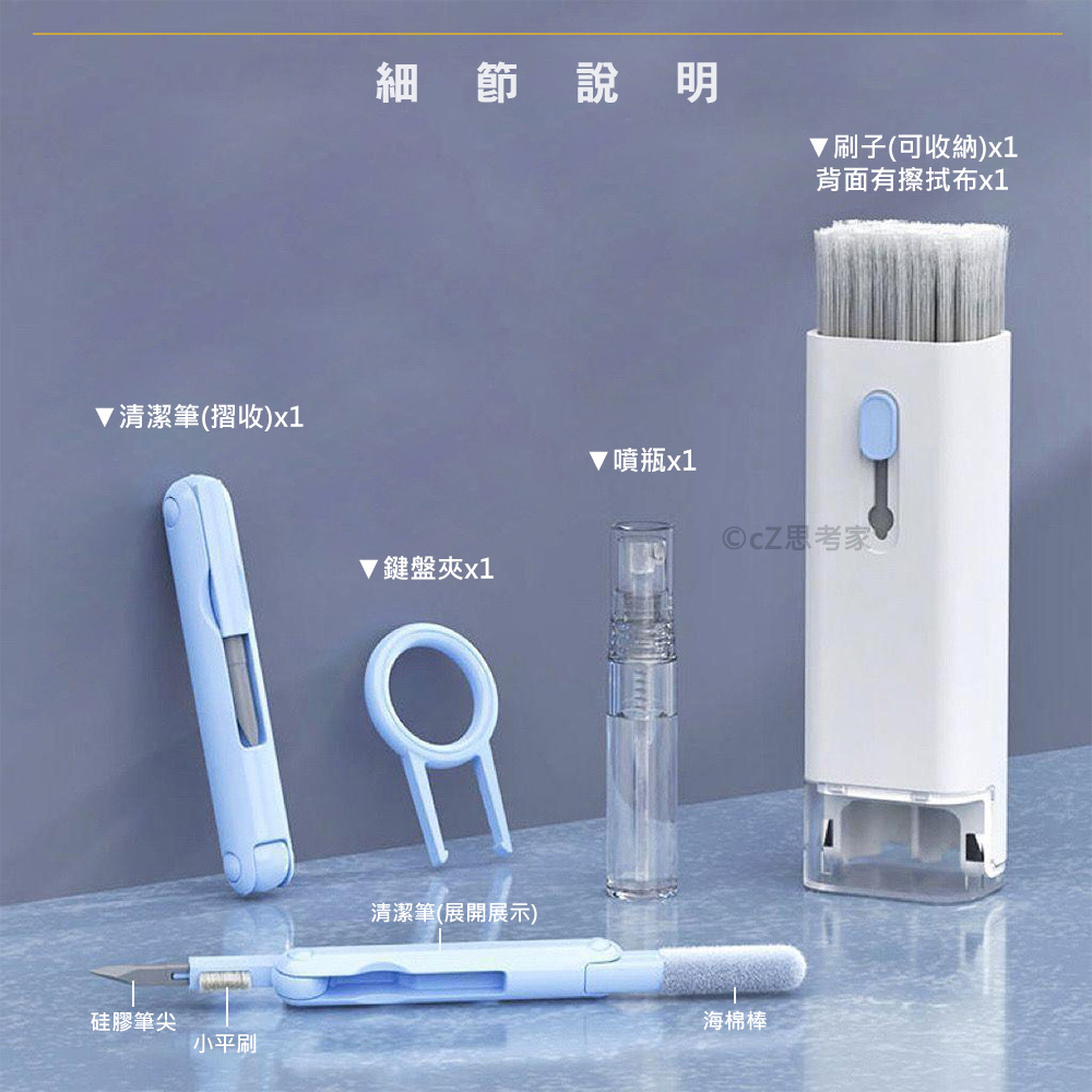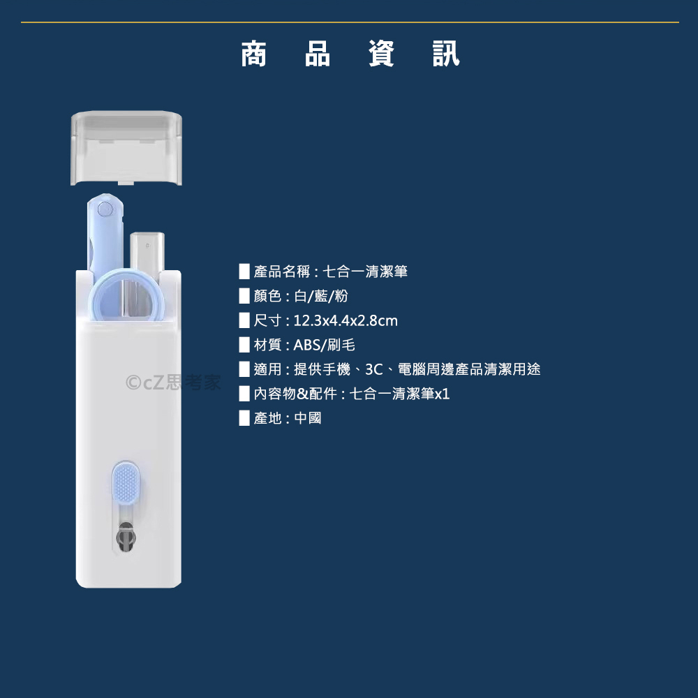 七合一清潔筆 多功能清潔筆 清潔刷 AirPods清潔 藍芽耳機清潔 手機清潔 鏡頭清潔 相機 鍵盤 筆電 清潔 耳機白|粉|藍Cleaning KitcZ思考家 – 3C手機配件
