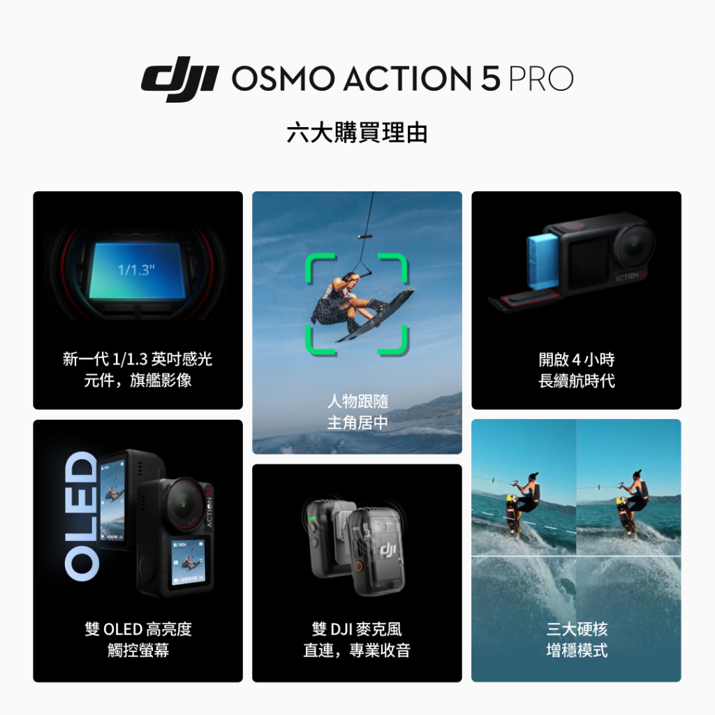【DJI】Osmo Action 5 Pro 運動相機/迷你相機|搭載水壓及氣壓計|首款智慧跟隨|裸機防水20米Action5 Pro暢拍套裝限時優惠|Osmo Action5 Pro標準套裝|Osmo Action5 Pro暢拍套裝|Action5 Pro標準套裝限時優惠Action CamerasDJI大疆 官方授權品牌旗艦店