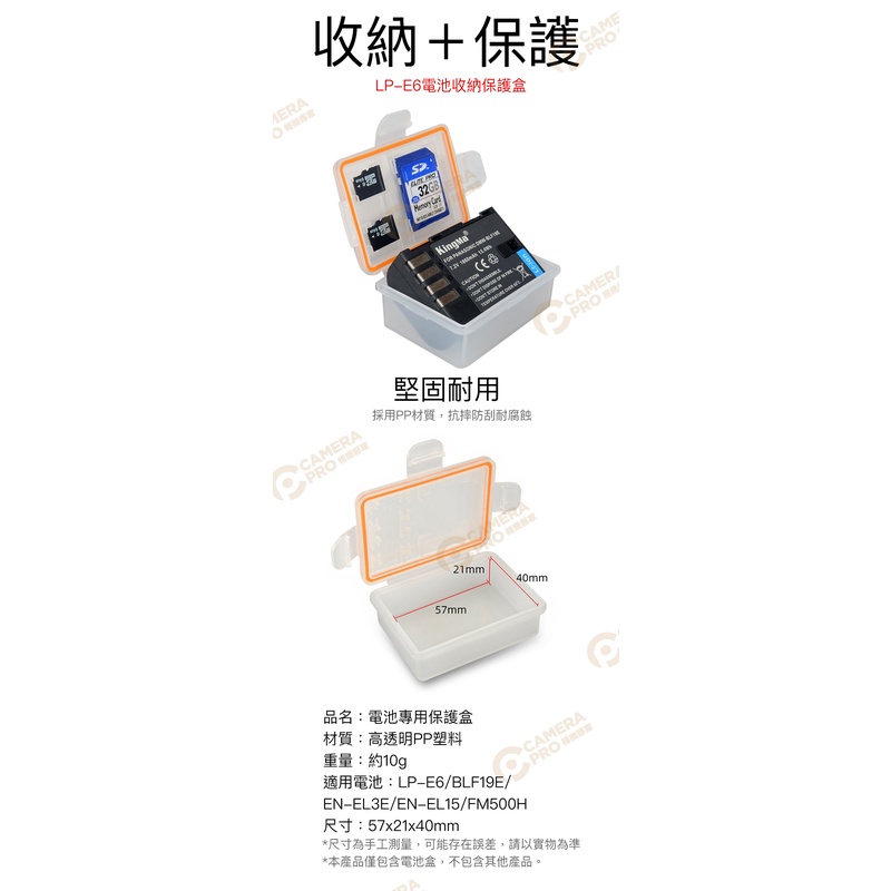 Kingma LP-E6 電池盒 收納盒 防摔防水 適 EN-EL15 FM500H BLF19E 等電池Kingma LP-E6 電池盒 收納盒 防摔防水 適 EN-EL15 FM500H BLF19E 等電池Otherscamerapro 相機專家