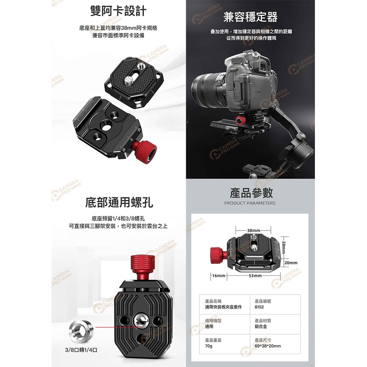 CameraPro 快拆板套組 快裝板 快裝座 Arca 阿卡 兼容 Peak Design 雲台 穩定器 [相機專家]CameraPro 快拆板套組 快裝板 快裝座 Arca 阿卡 兼容 Peak Design 雲台 穩定器 [相機專家]Otherscamerapro 相機專家