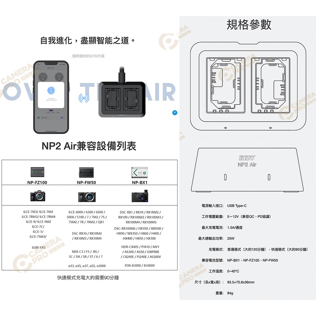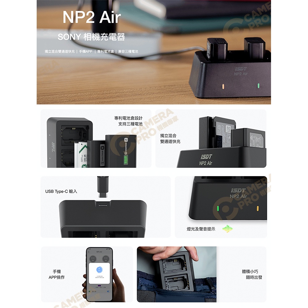 ISDT NP2 Air SONY 電池充電器 支持快充 FZ100 FW50 BC-QZ1 BX1 相機專家NP2 Air 充電器|NP2 Air 充電器 +100W快充頭Battery Chargerscamerapro 相機專家