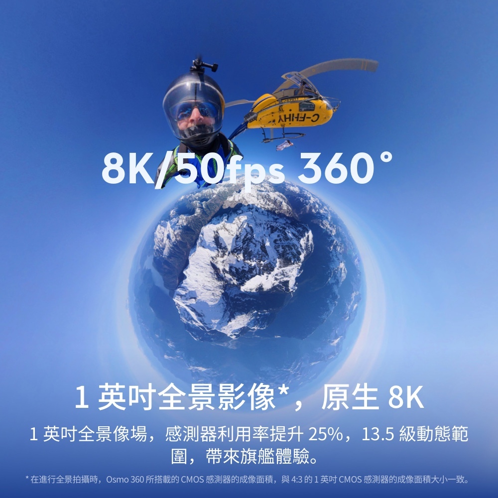 【DJI】OSMO 360標準套裝 全景相機/運動相機|1英吋CMOS|內建105G記憶體