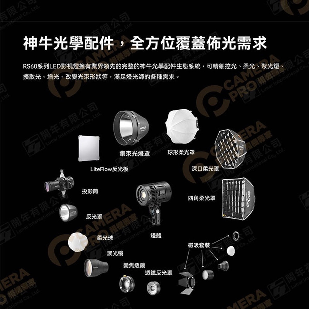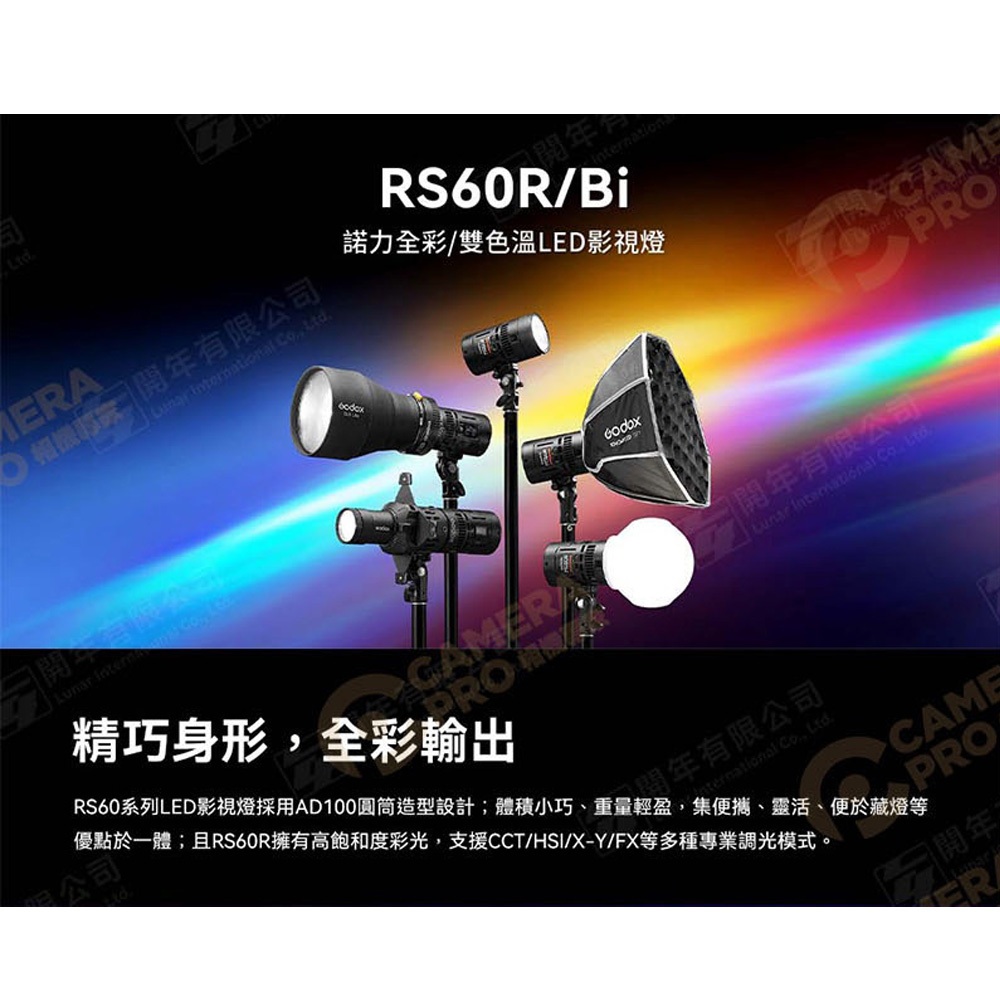 Godox 神牛 RS60R 全彩LED影視燈 攝影燈 神牛磁吸卡口 神牛光學配件 多供電模式 相機專家 公司貨RS60R 全彩,不加購(標配)|RS60R 全彩,加購S2支架(轉保榮卡口)|RS60R 全彩,加購AK-R1磁吸控光配件Lighting & Studio Equipmentscamerapro 相機專家