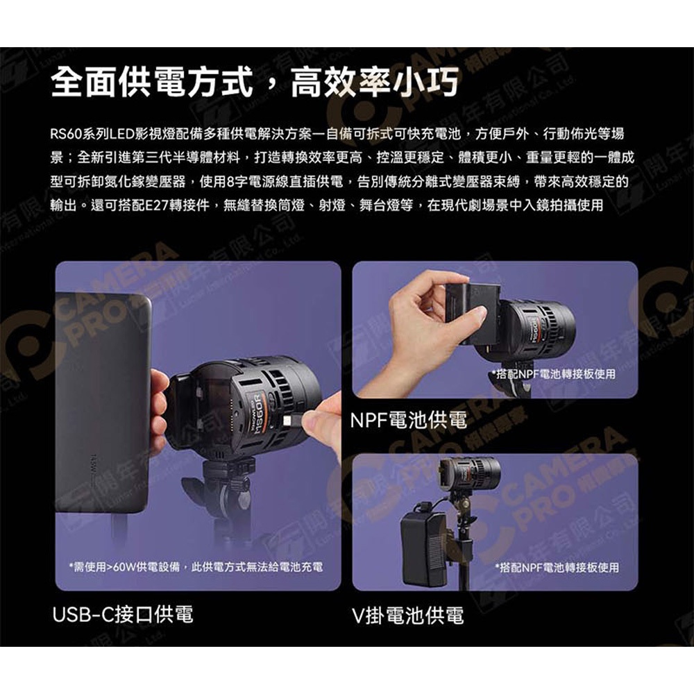 Godox 神牛 RS60BI 雙色溫LED影視燈 攝影燈 神牛磁吸卡口 神牛光學配件 多供電模式 [相機專家] 公司貨RS60BI(標配)|RS60BI+S2支架(轉保榮卡口)|RS60BI+AK-R1磁吸控光配件Lighting & Studio Equipmentscamerapro 相機專家