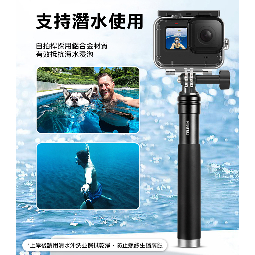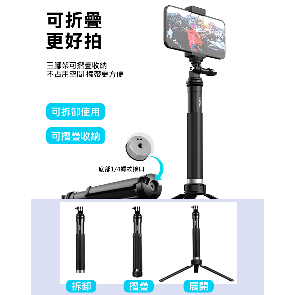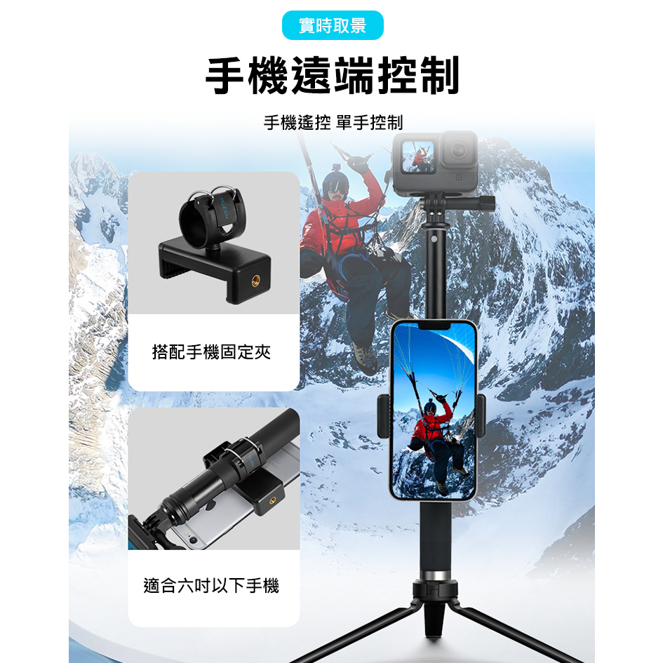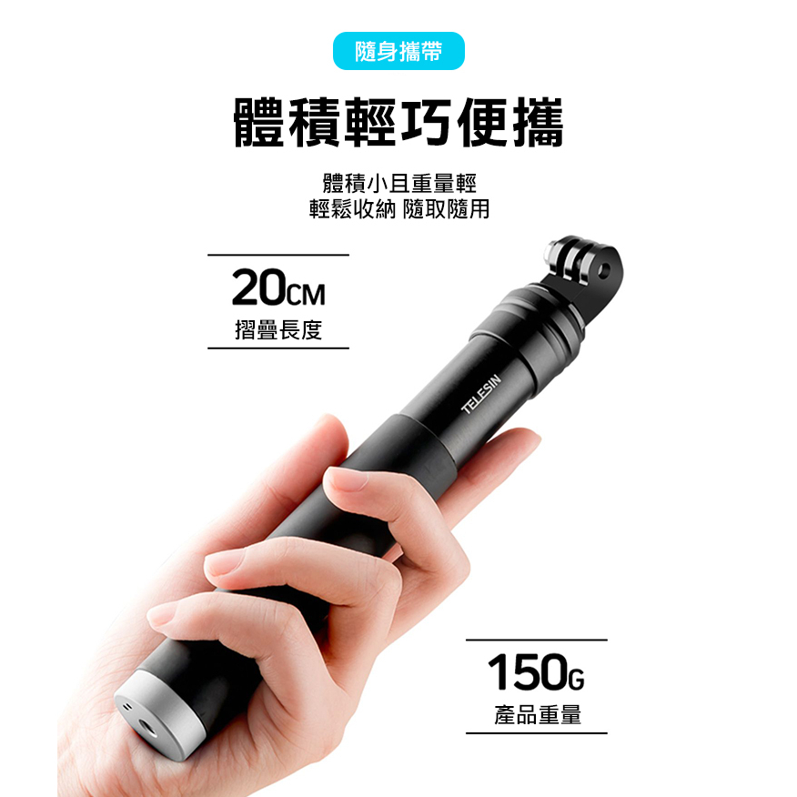 TELESIN泰迅 航空鋁合金自拍桿/自拍棒(附手機夾)90cm可伸縮 運動攝影機通用GOPRO/SJCAM