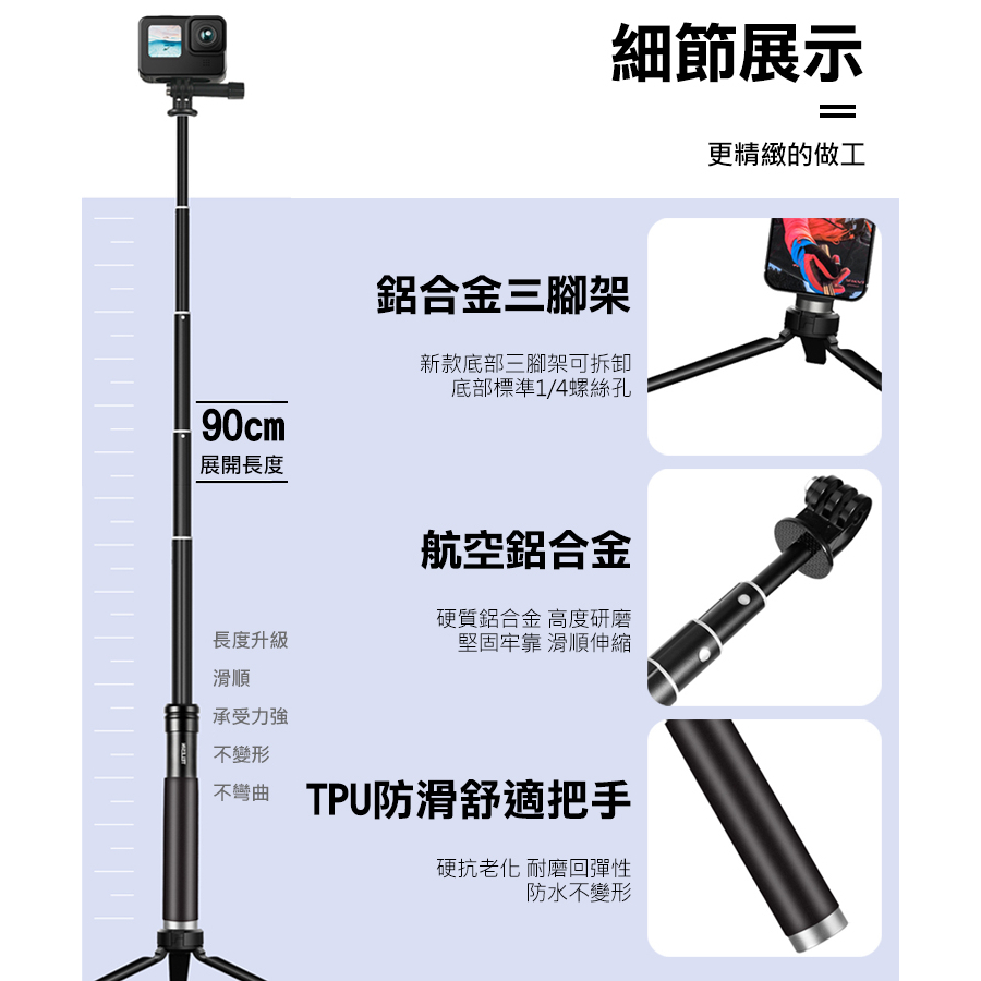 TELESIN泰迅 航空鋁合金自拍桿/自拍棒(附手機夾)90cm可伸縮 運動攝影機通用GOPRO/SJCAMTELESIN泰迅 航空鋁合金自拍桿/自拍棒(附手機夾)90cm可伸縮 運動攝影機通用GOPRO/SJCAMTripods, Monopods, & AccessoriesFLYone|領先者|SJCAM原廠授權–行車記錄器/運動攝影機