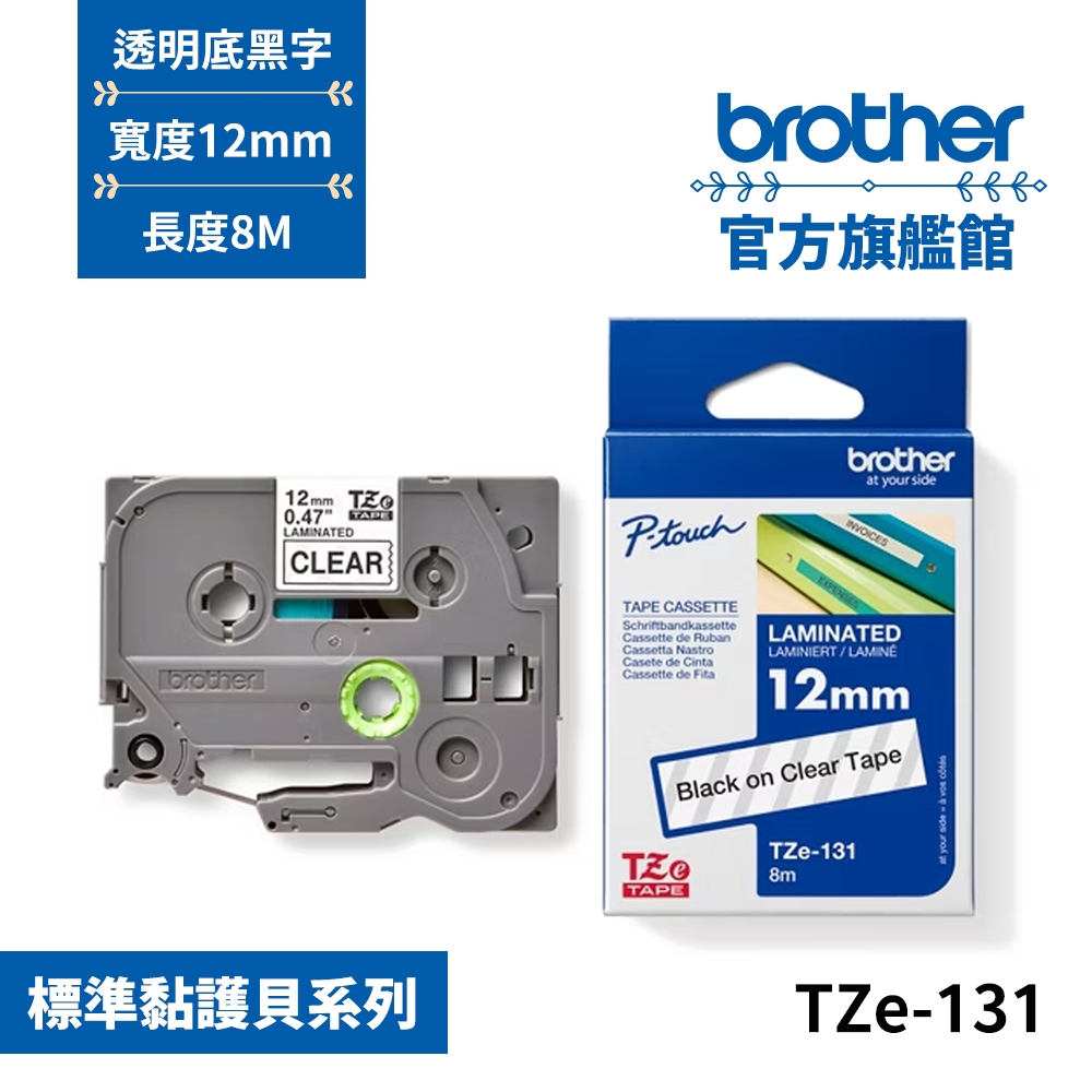 BROTHER TZe-131 原廠標準黏性護貝標籤帶 12mm 透明底黑字 單捲 多捲優惠 公司貨 現貨TZe-131 (12mm 透明底黑字)OthersBROTHER 官方旗艦館