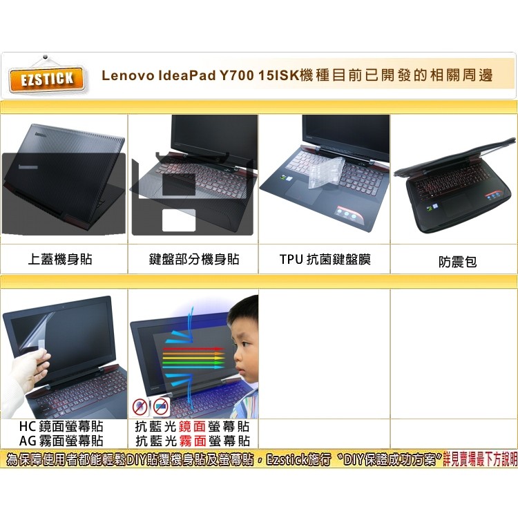 【Ezstick】Lenovo Y700 15ISK 筆電機身貼|黑色卡夢紋|上蓋+鍵盤週圍貼機身貼(含上蓋+鍵盤週圍貼)共二張|鏡面螢幕貼(加購價)-單購|霧面螢幕貼(加購價)-單購|抗藍光鏡面螢幕貼(加購價)-單購|抗藍光霧面螢幕貼(加購價)-單購|抗藍光防窺片(左右防窺)-單購|抗藍光防窺片(360度防窺)-單購Laptop Skins & CoversEZstick 3C商品保護賣場