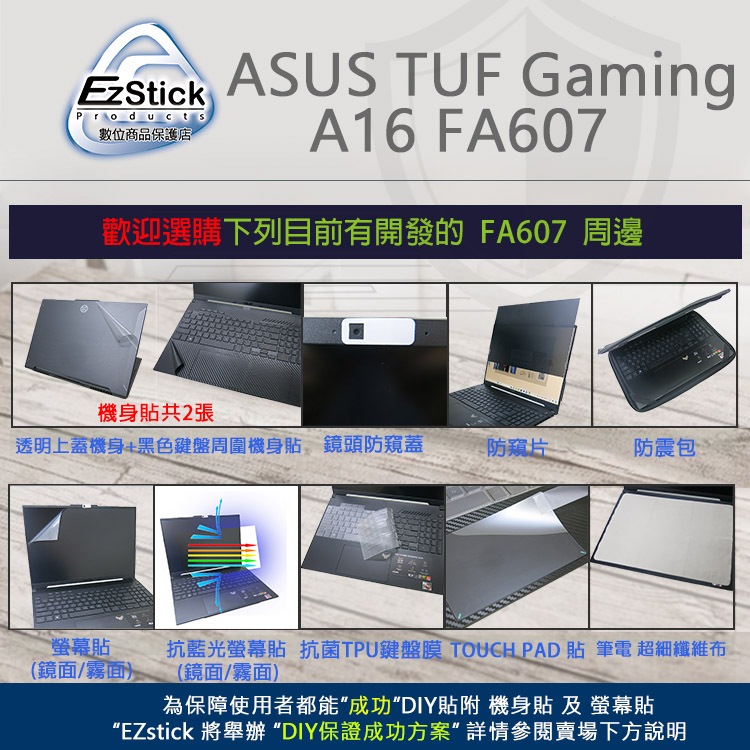 【Ezstick】ASUS A16 FA607 FA607PI 16吋 奈米銀抗菌TPU 鍵盤保護膜 鍵盤膜抗菌TPU鍵盤膜|鏡面螢幕貼(加購價)-單購|霧面螢幕貼(加購價)-單購|抗藍光鏡面螢幕貼(加購價)單購|抗藍光霧面螢幕貼(加購價)-單購|抗藍光防窺片(左右防窺)-單購|抗藍光防窺片(360度防窺)-單購|鍵盤膜+觸控板貼+施工刮板|機身貼(含上蓋+鍵盤週圍貼)共二張|鍵盤膜+筆電超細纖維布331*230mmKeyboard & Trackpad CoversEZstick 3C商品保護賣場