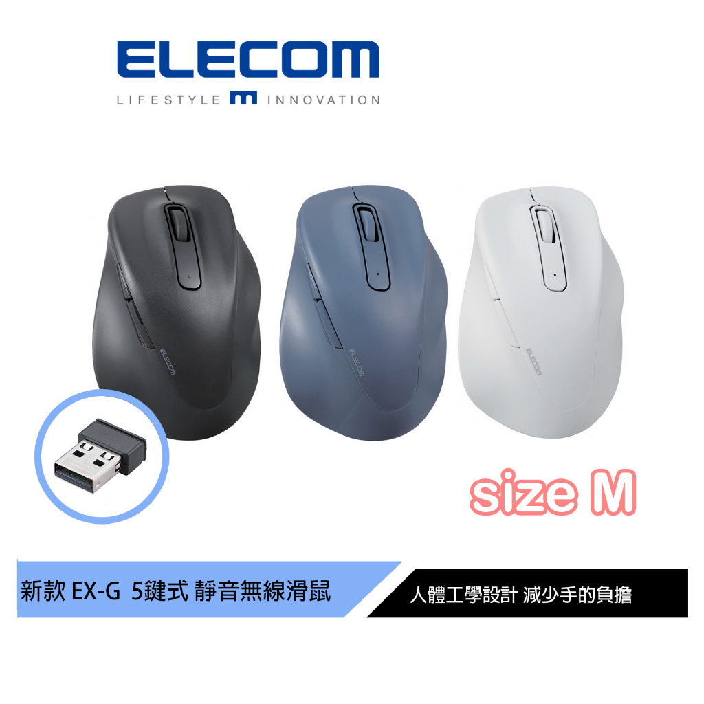 【日本ELECOM】EX-G人體工學 無線靜音5鍵式滑鼠M 黑/藍/白 適合一般手型 減少手腕負擔白|黑|藍MiceELECOM 台灣旗艦店