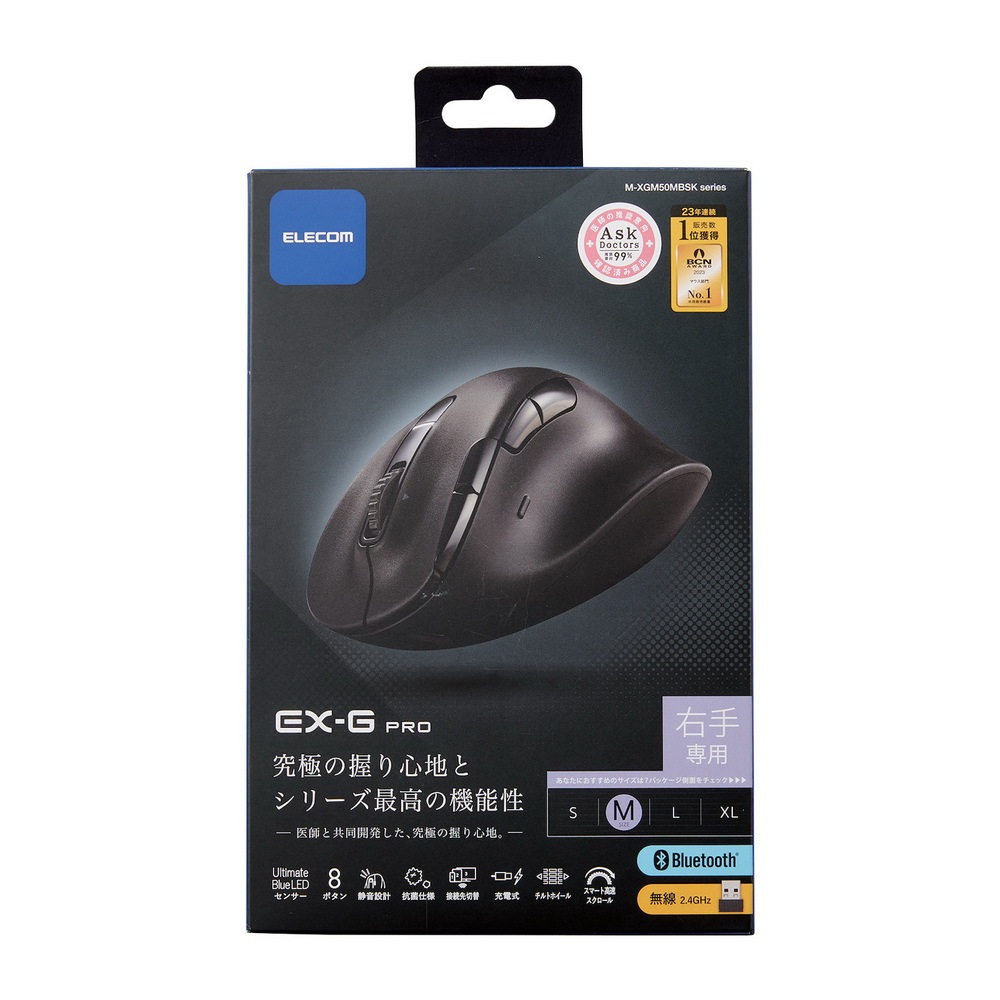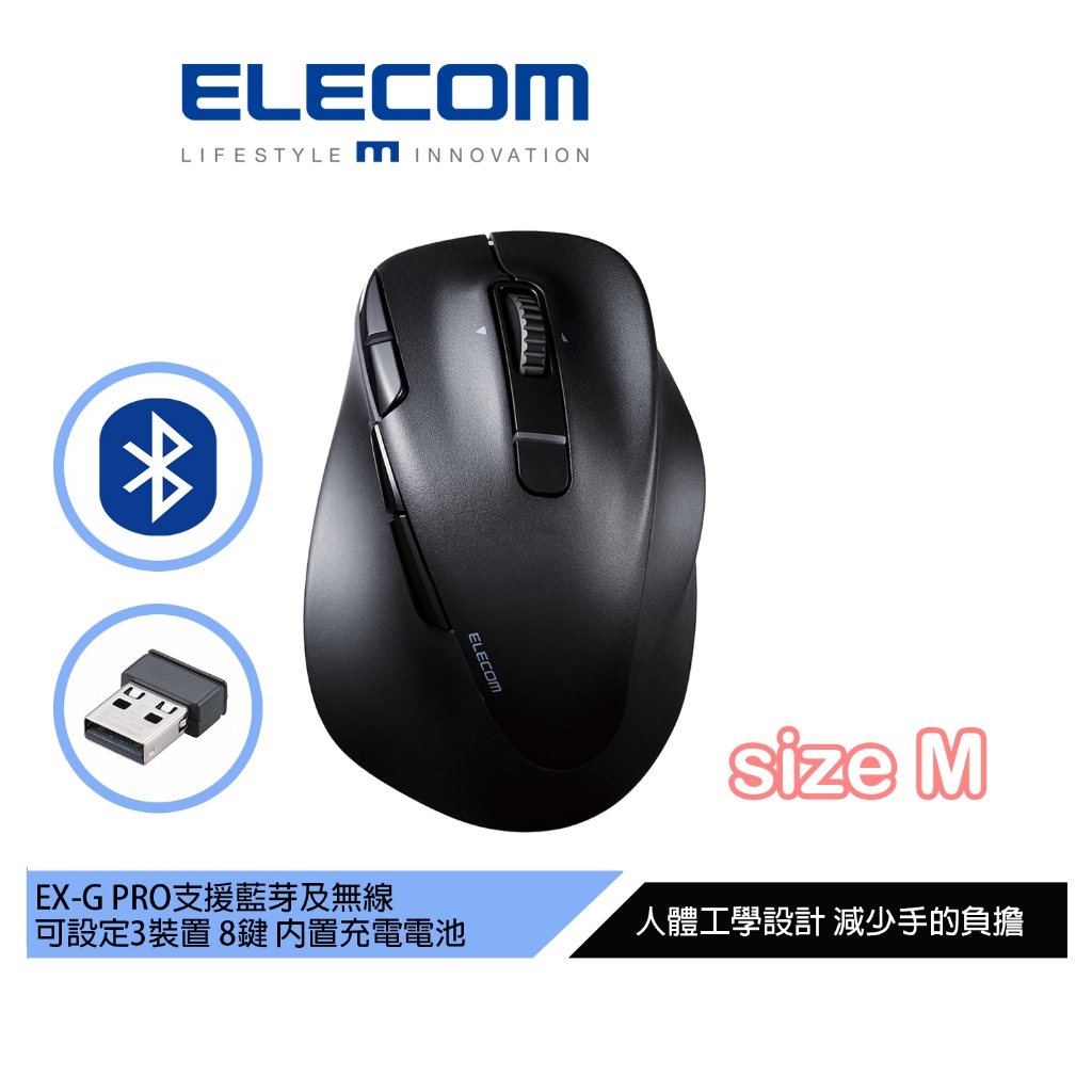【日本ELECOM】EX-G Pro人體工學雙模 靜音滑鼠M 無線/藍芽 內建充電鋰電池 可接電腦充電【日本ELECOM】EX-G Pro人體工學雙模 靜音滑鼠M 無線/藍芽 內建充電鋰電池 可接電腦充電MiceELECOM 台灣旗艦店