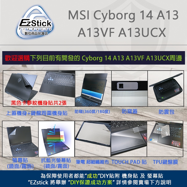 【Ezstick】MSI Cyborg 14 A13 A13VF A13UCX 筆電 超細纖維 清潔布 擦拭布 防塵布防塵布 285*196mm|鋅合金筆電支架銀色單折型|鋅合金筆電支架黑色雙折型|果凍清潔膠|三合一清潔組OthersEZstick 3C商品保護賣場