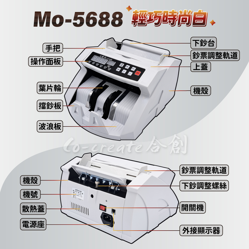 【Co-create 合創】Mo-5688尊爵型 輕巧時尚白 (送外顯+防塵套+保固一年)|驗鈔機 點鈔機 數鈔機Mo-6688鑽石【外顯+質感黑防塵套】|Mo-6888翡翠【外顯+質感黑防塵套】|Mo-8688皇家-黑【外顯+黑防塵套】|Mo-8688皇家-白【外顯+黑防塵套】|Mo-8688皇家黑白【外顯+黑防塵套】|Mo-5688尊爵【外顯+質感黑防塵套】|Mo-5888智慧黑白【外顯+黑防塵套】Money CountersCo create 合創