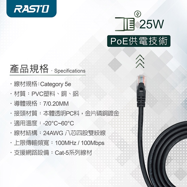 RASTO REC2 高速 Cat5e 傳輸網路線-3MRASTO REC2 高速 Cat5e 傳輸網路線-3MNetwork Cables & ConnectorsE-books 官方旗艦店