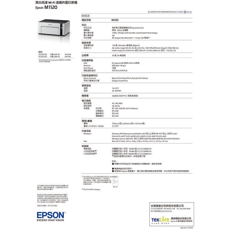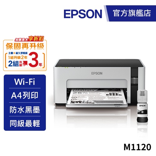 EPSON M1120 黑白高速Wifi連續供墨印表機加購墨水9折(登錄送) 公司貨EPSON M1120 黑白高速Wifi連續供墨印表機加購墨水9折(登錄送) 公司貨Printers, Scanners & Photocopy MachinesEPSON 官方旗艦店