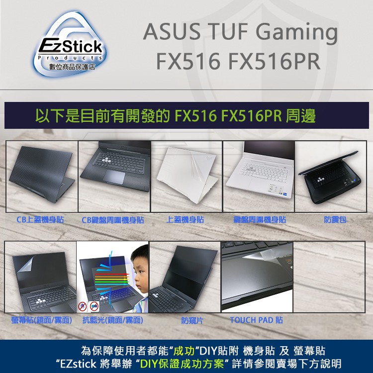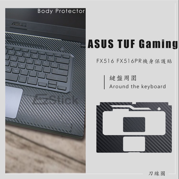 【Ezstick】ASUS FX516 FX516PR 筆電機身貼|黑色卡夢紋|上蓋+鍵盤週圍貼|御鐵灰專用機身貼(含上蓋+鍵盤週圍貼)共二張|鏡面螢幕貼(加購價)-單購|霧面螢幕貼(加購價)-單購|抗藍光鏡面螢幕貼(加購價)-單購|抗藍光霧面螢幕貼(加購價)-單購|抗藍光防窺片(左右防窺)-單購|抗藍光防窺片(360度防窺)-單購|抗菌TPU鍵盤膜-單購|機身貼+筆電超細纖維布331*230mm|機身貼+觸控板貼+施工刮板Laptop Skins & CoversEZstick 3C商品保護賣場
