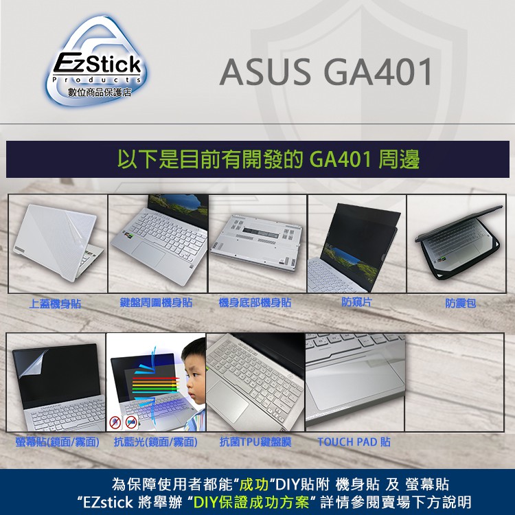 【Ezstick】ASUS G14 GA401 GA401II GA401IU TPU鍵盤膜|奈米銀抗菌|防水可水洗鏡面螢幕貼(加購價)-單購|霧面螢幕貼(加購價)-單購|抗藍光鏡面螢幕貼(加購價)-單購|抗藍光霧面螢幕貼(加購價)-單購|抗菌TPU鍵盤膜|鍵盤膜+筆電超細纖維布285*196mm|鍵盤膜+觸控板貼+施工刮板|抗藍光防窺片(左右防窺)(加購價)-單購|機身貼(含上蓋+鍵盤週圍+底部貼)共三張|抗藍光防窺片(360度防窺)-單購Keyboard & Trackpad CoversEZstick 3C商品保護賣場