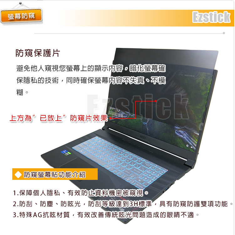 【Ezstick】MSI 微星 Katana 17 B12V B13V B13U 防藍光 防眩光 防窺膜 防窺片左右防窺|360度上下左右防窺Laptop Skins & CoversEZstick 3C商品保護賣場