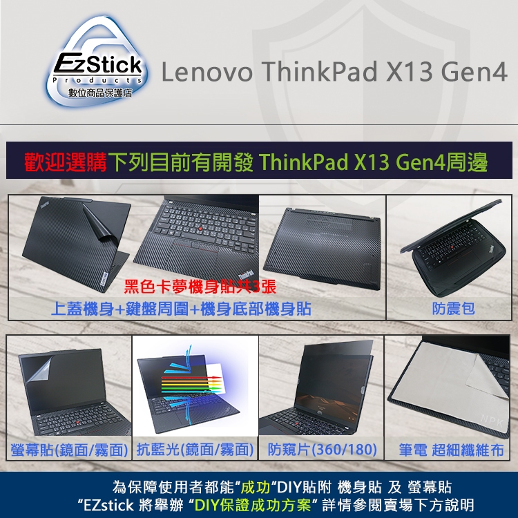 【Ezstick】ThinkPad X13 Gen4 Gen5 筆電機身貼|黑色卡夢紋|上蓋+鍵盤週圍+底部貼機身貼+筆電超細纖維布285*196mm|機身貼(含上蓋+鍵盤週圍+底部貼)共三張|鏡面螢幕貼(加購價)-單購|霧面螢幕貼(加購價)-單購|抗藍光鏡面螢幕貼(加購價)-單購|抗藍光霧面螢幕貼(加購價)-單購|抗藍光防窺片(左右防窺)-單購|抗藍光防窺片(360度防窺)-單購Laptop Skins & CoversEZstick 3C商品保護賣場