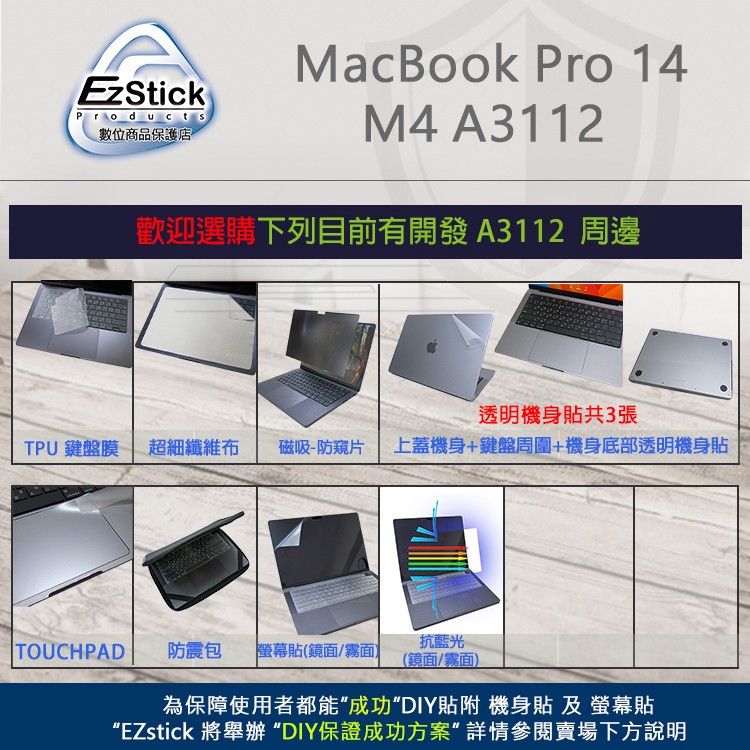 【Ezstick】MacBook Pro 14 M4 A3112 磁吸防窺片|抗藍光防眩光|Privacy Filter磁吸式防藍光防窺膜|磁吸式防藍光防窺膜+筆電超細纖維布Laptop Skins & CoversEZstick 3C商品保護賣場