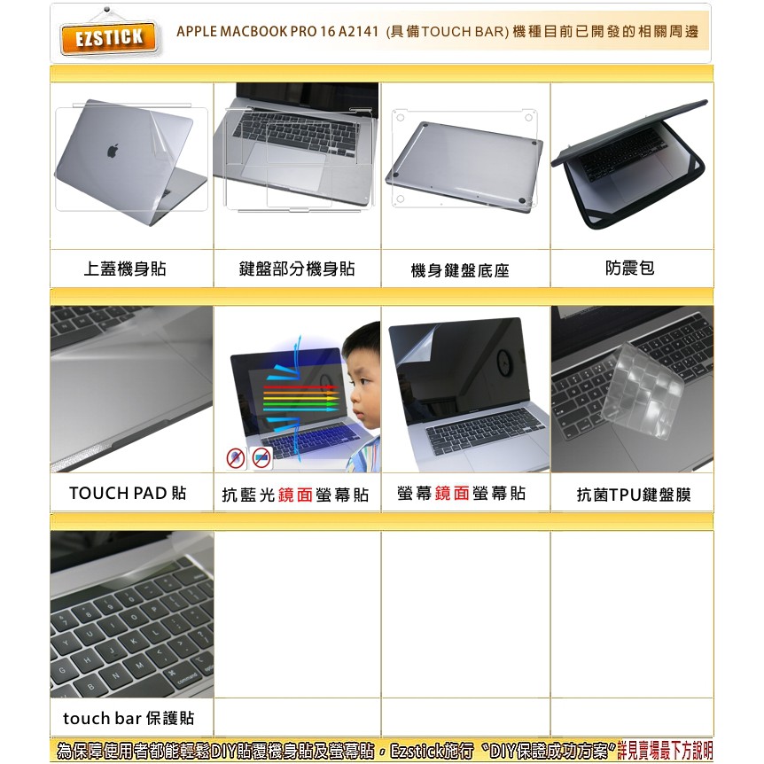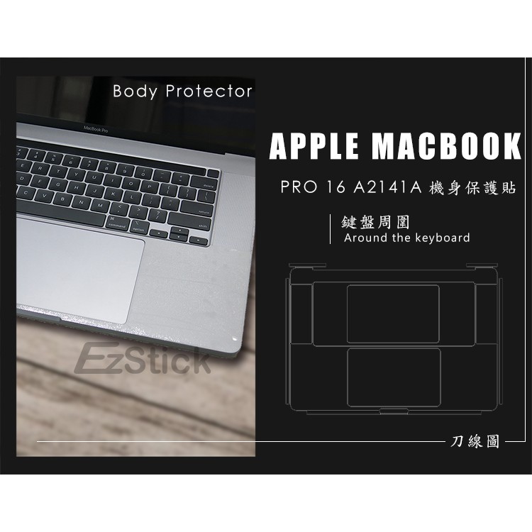 【Ezstick】APPLE MacBook Pro 16 A2141 筆電機身貼|霧面質感款|上蓋+鍵盤週圍+底部貼|機身貼(含上蓋+鍵盤週圍+底部貼)共三張|鏡面螢幕貼(加購價)-單購|防藍光鏡面螢幕貼(加購價)-單購Laptop Skins & CoversEZstick 3C商品保護賣場