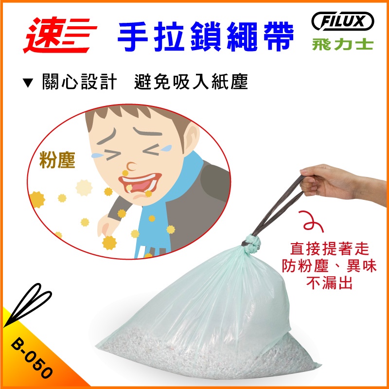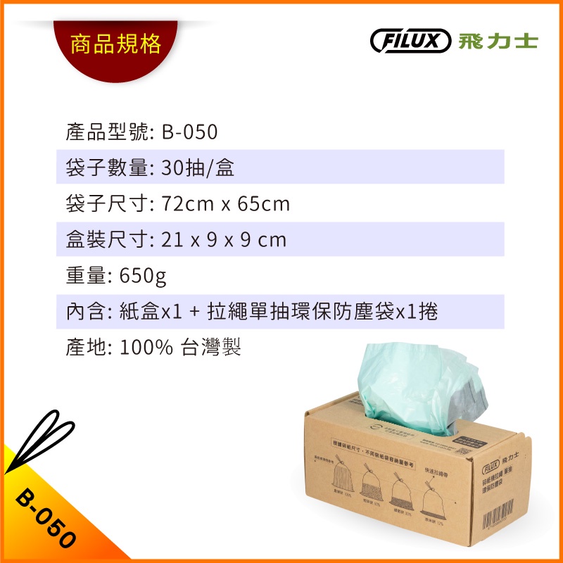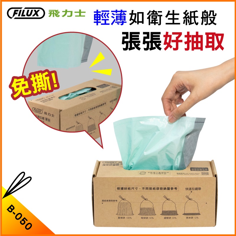 【盒裝30抽】拉繩單抽環保集紙防塵垃圾袋 B-050 (特大)1盒|2盒Paper ShreddersFILUX 飛力士