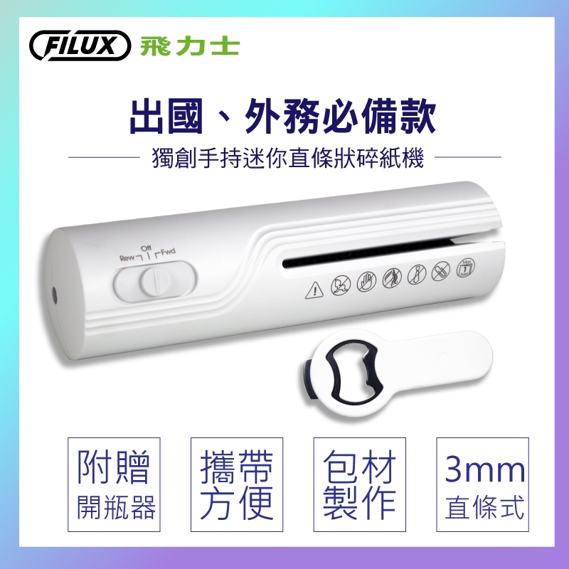 【FILUX 飛力士】手持迷你直條碎紙機 (極簡白) S-090《附贈開瓶器》出國+外務輕巧碎紙機必備【FILUX 飛力士】手持迷你直條碎紙機 (極簡白) S-090《附贈開瓶器》出國+外務輕巧碎紙機必備Paper ShreddersFILUX 飛力士