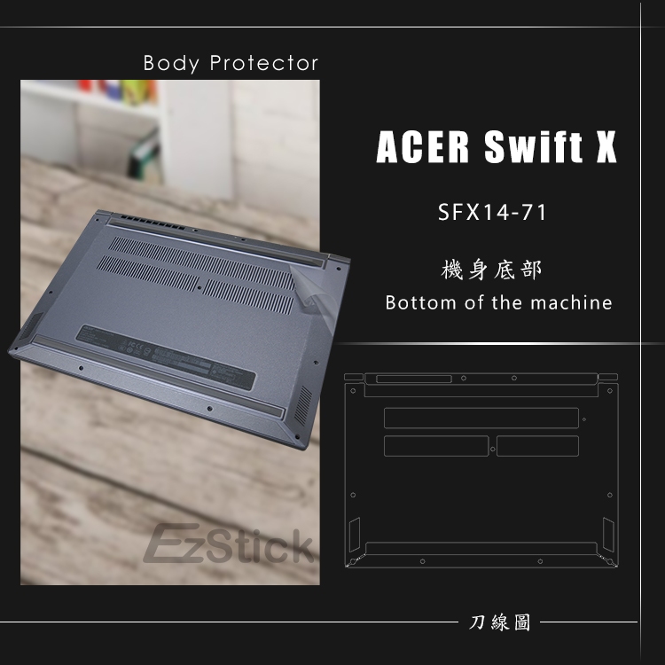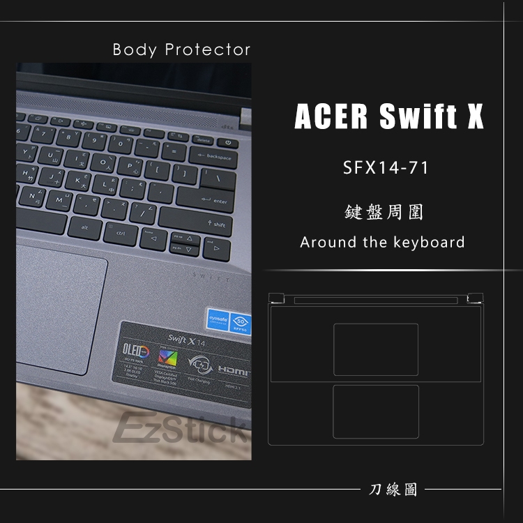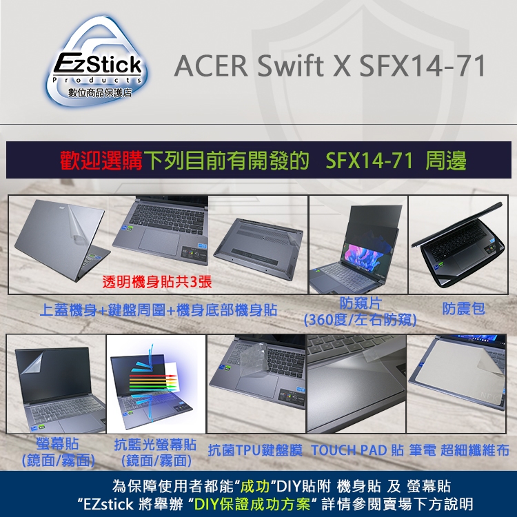 【Ezstick】Acer SFX14-71 SFX14-71G 透明 霧面 機身貼 (含上蓋+鍵盤週圍+底部貼)三合一防震包組|機身貼(含上蓋+鍵盤週圍+底部貼)共三張|鏡面螢幕貼(加購價)-單購|霧面螢幕貼(加購價)-單購|抗藍光鏡面螢幕貼(加購價)-單購|抗藍光霧面螢幕貼(加購價)-單購|抗藍光防窺片(左右防窺)-單購|抗藍光防窺片(360度防窺)-單購|機身貼+筆電超細纖維布285*196mm|機身貼+觸控板貼|抗菌TPU鍵盤膜-單購Laptop Skins & CoversEZstick 3C商品保護賣場