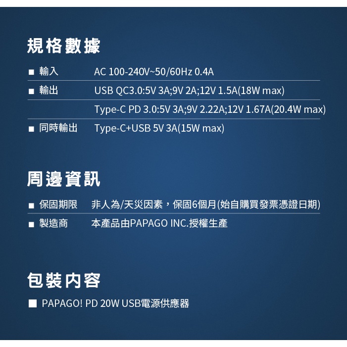 PAPAGO! PD 20W QC/PD 3.0 USB電源供應器PAPAGO! PD 20W QC/PD 3.0 USB電源供應器Power Supply UnitsDigigomart