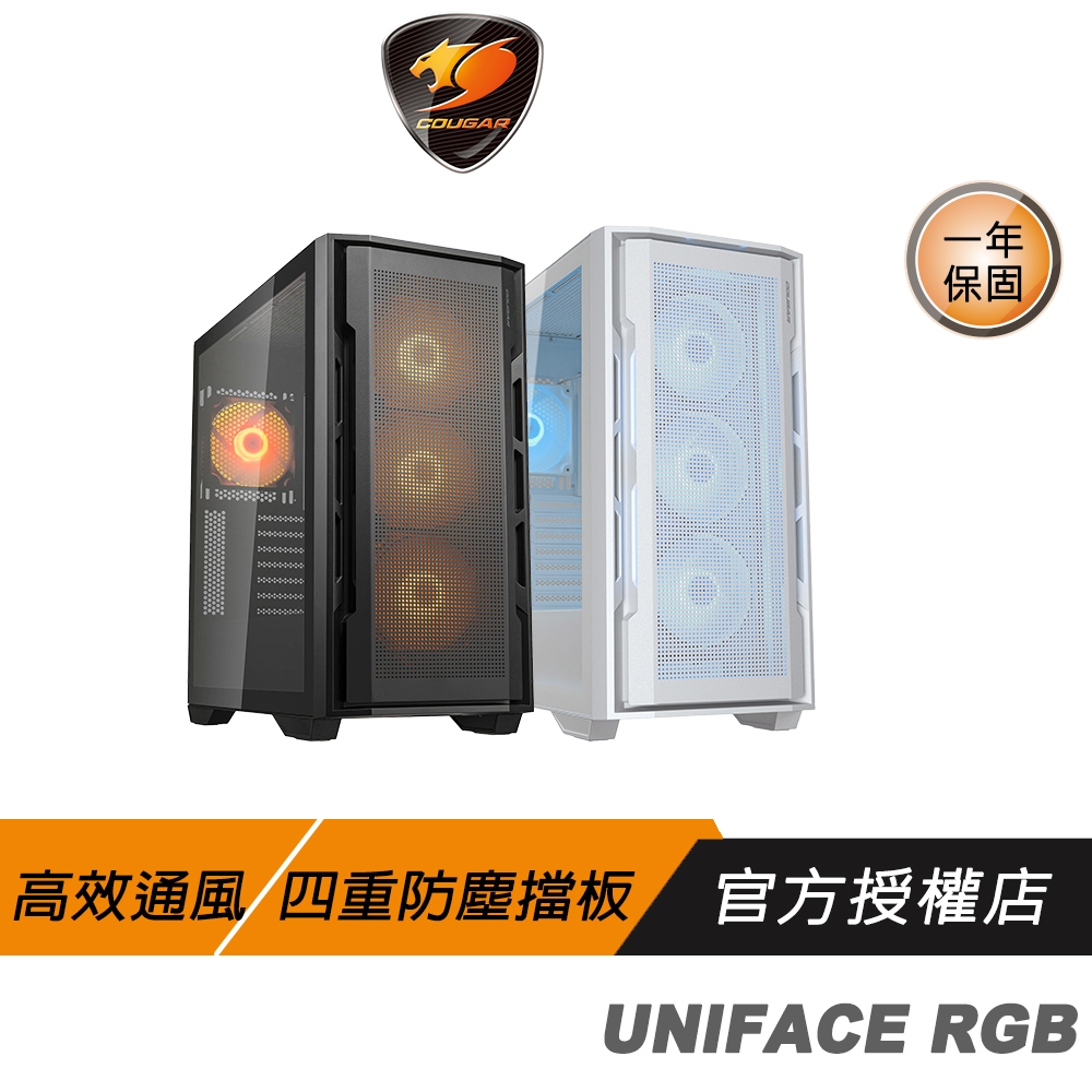 Cougar 美洲獅 UNIFACE RGB 電腦機殼 四重防塵濾網 支援最高400mm顯卡 中塔機箱 主機殼黑色|白色PC CasesCOUGAR 美洲獅官方授權旗艦店