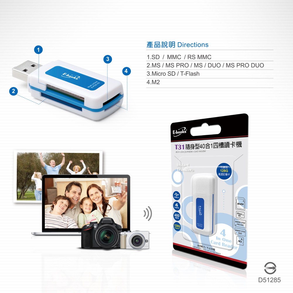 E-books T31 隨身型40合1四槽讀卡機E-books T31 隨身型40合1四槽讀卡機USB Hubs & Card ReadersE-books 官方旗艦店