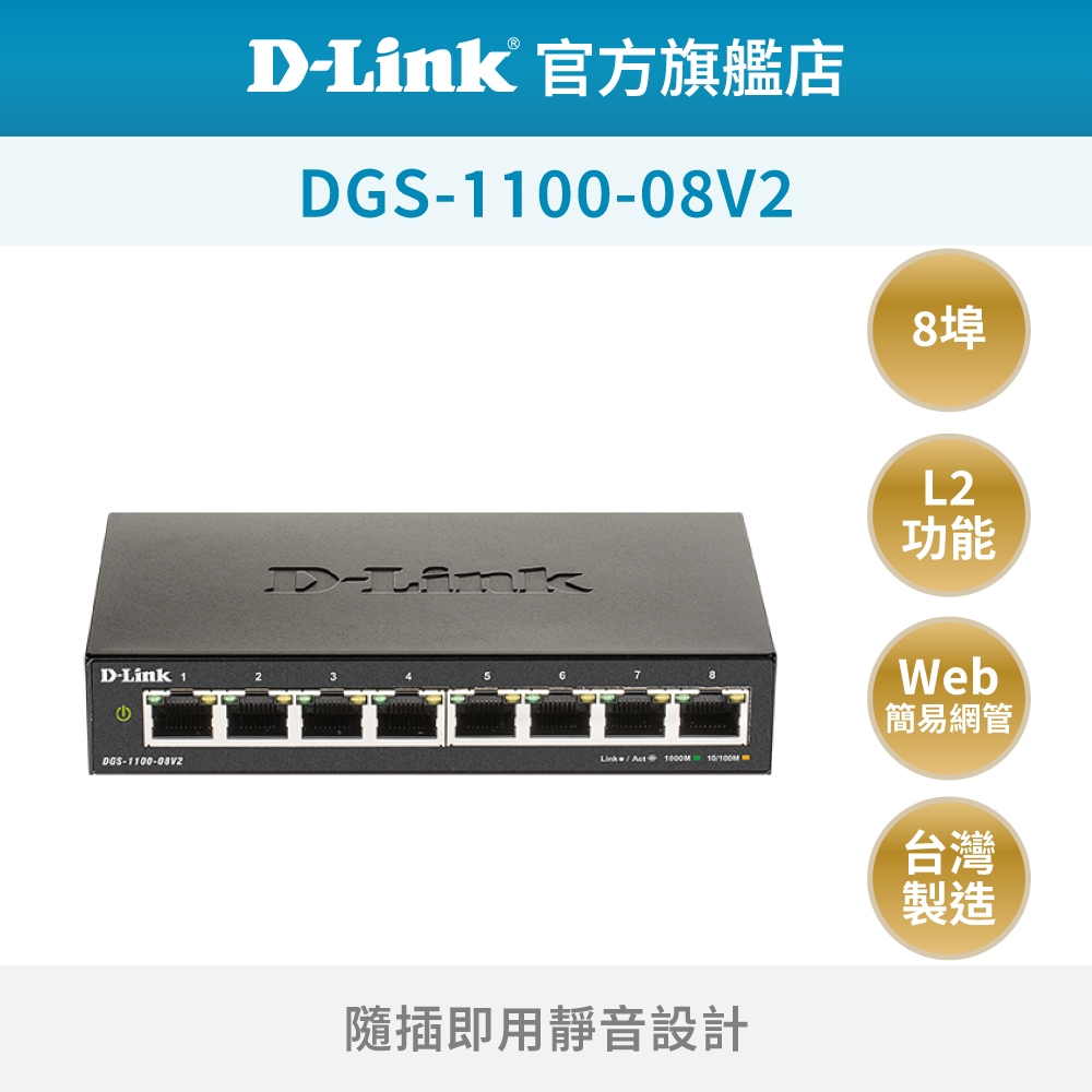 D-Link 友訊 DGS-1100-08V2 8埠 Gigabit 簡易網管型 壁掛安裝 網路交換器(新品/福利品)活動品-DGS-1100-08V2Network Switches & PoED-Link官方旗艦店