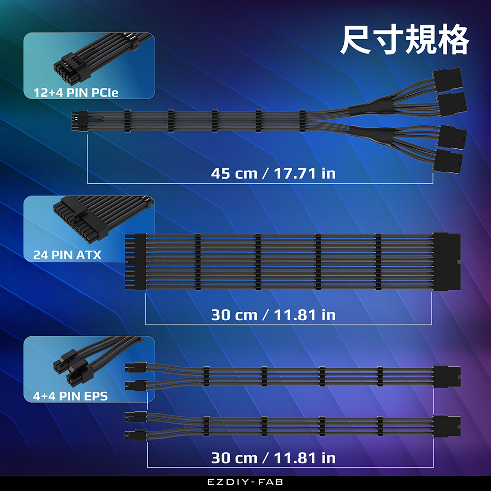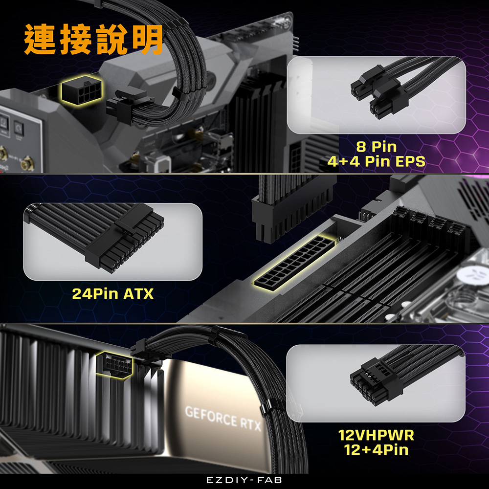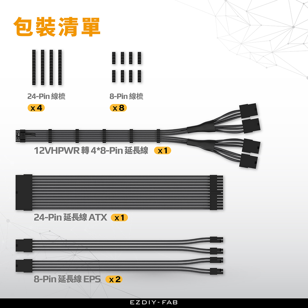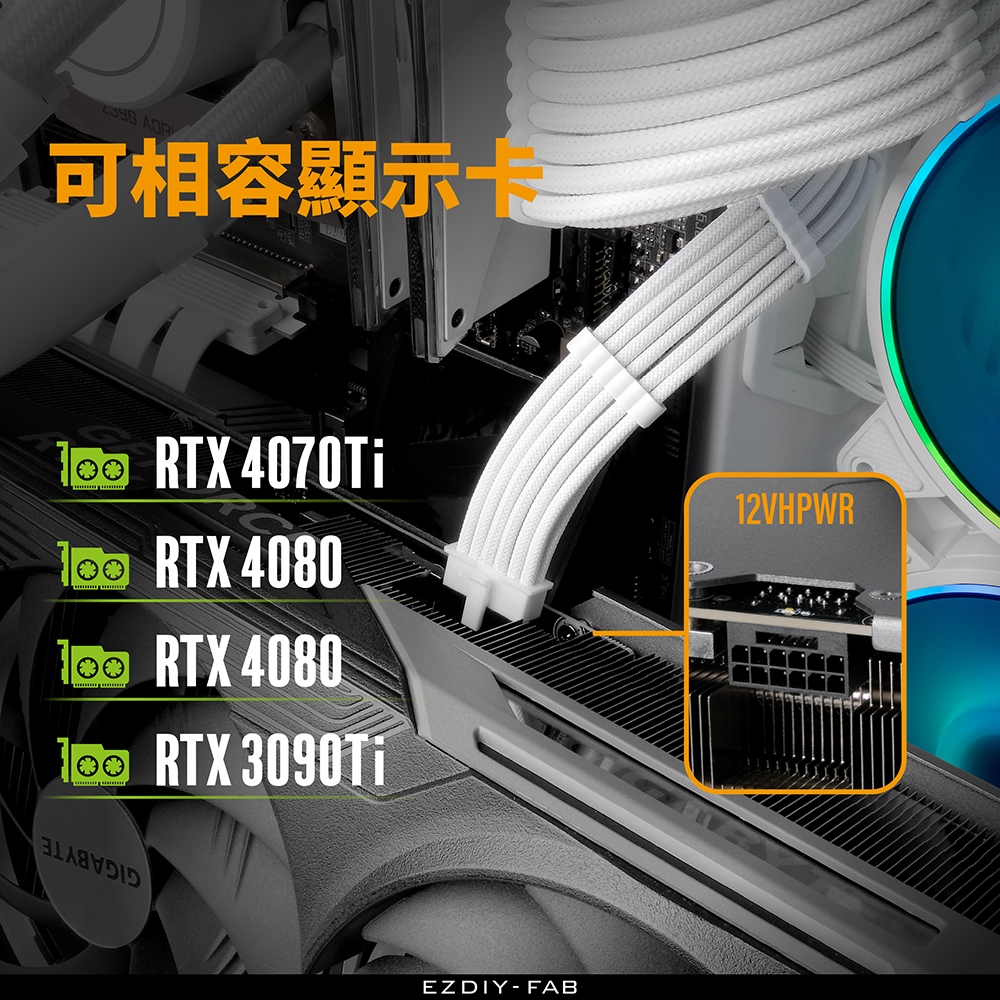 EZDIY-FAB 16AWG PCIE5.0 12VHPWR電供延長編織線4件套-含GPU12+4pin轉8pinx4全白化|黑色|黑白|黑灰|黑紅|白色Network Cables & ConnectorsEZDIY-FAB官方網路商店