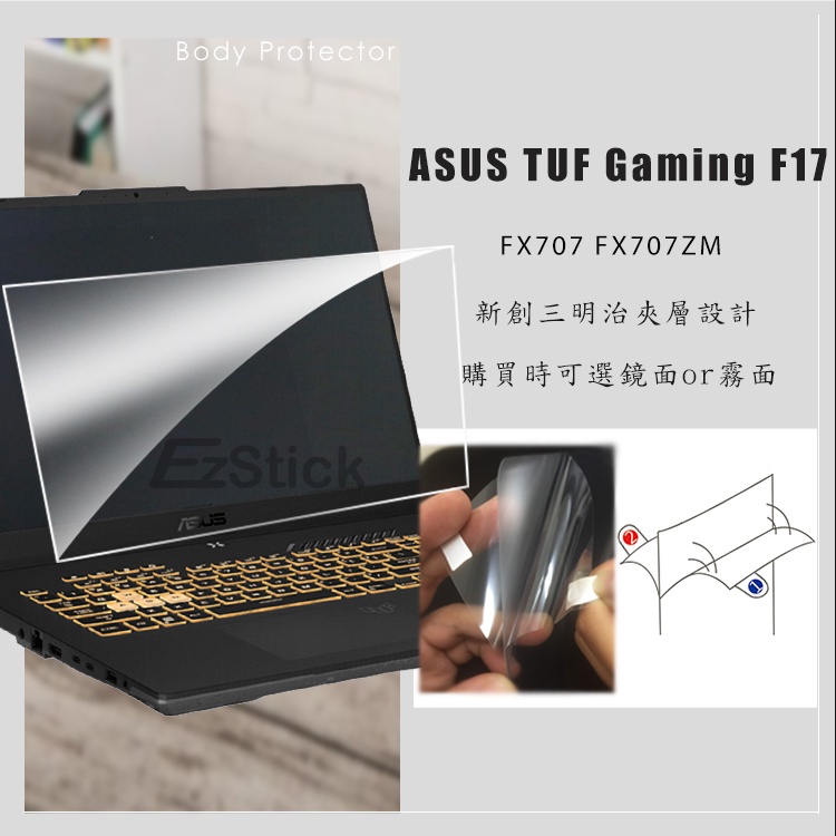 【Ezstick】ASUS TUF Gaming F17 FX707 FX707ZM 防藍光螢幕貼 (可選鏡面或霧面)抗藍光鏡面螢幕貼|抗藍光霧面螢幕貼Laptop Skins & CoversEZstick 3C商品保護賣場