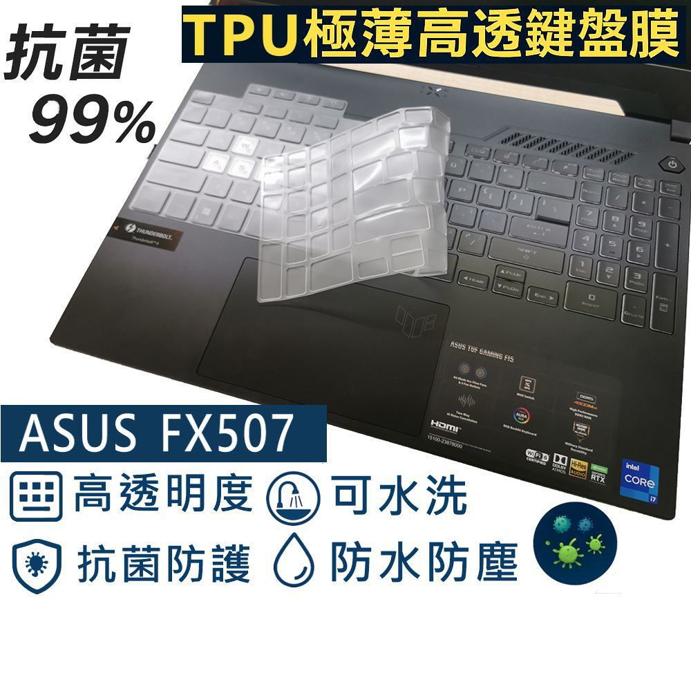 • 【Ezstick】ASUS TUF Gaming FX507 FX507ZE TPU鍵盤膜|奈米銀抗菌 防水可水洗