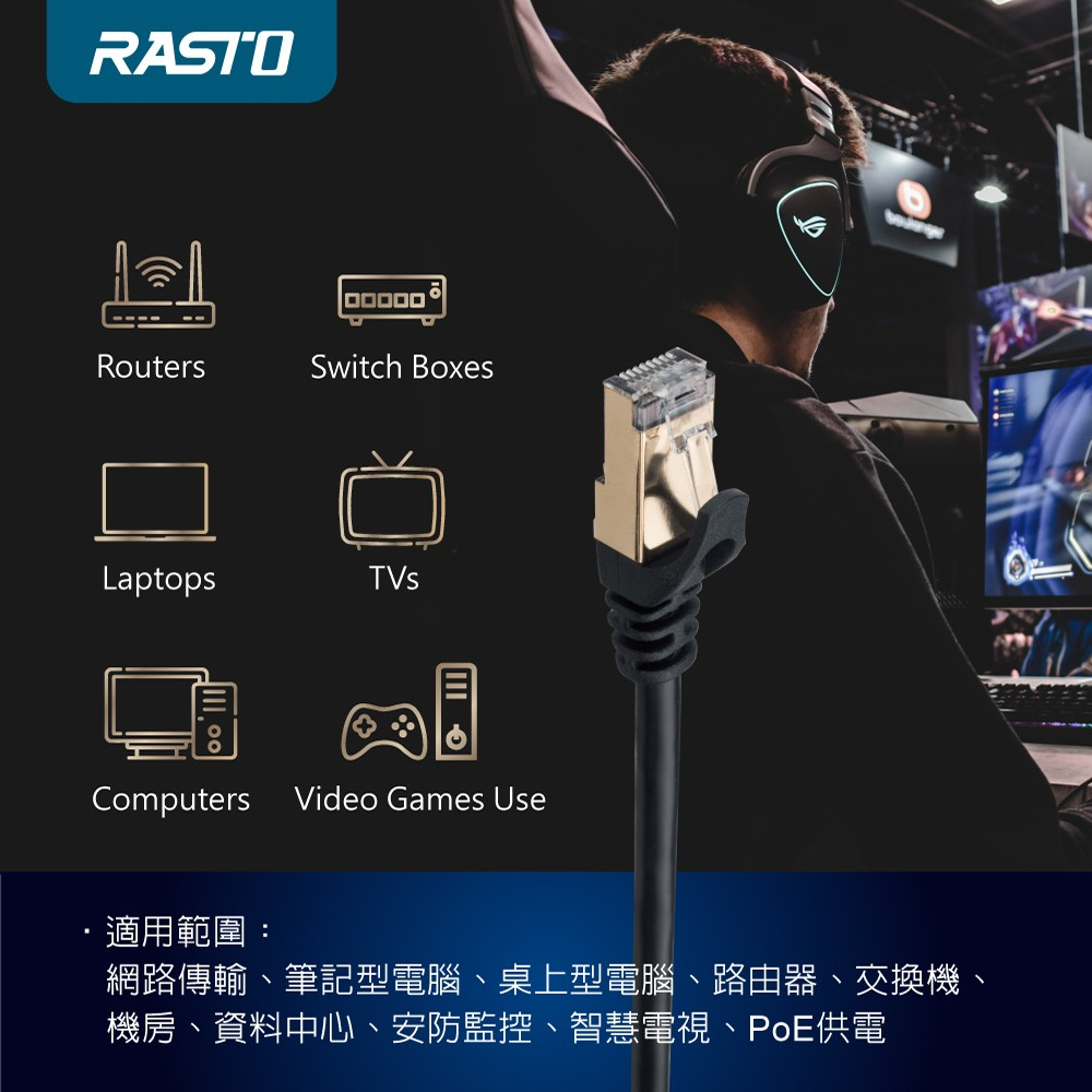 RASTO REC7 極速 Cat7 鍍金接頭SFTP雙屏蔽網路線-1.5MRASTO REC7 極速 Cat7 鍍金接頭SFTP雙屏蔽網路線-1.5MNetwork Cables & ConnectorsE-books 官方旗艦店