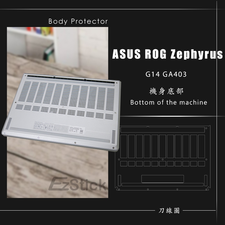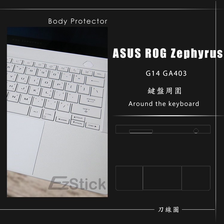 【Ezstick】ASUS GA403 GA403UV 筆電機身貼|霧面質感款|上蓋+鍵盤週圍+底部貼|鉑月銀專用機身貼+觸控板貼|機身貼(含上蓋+鍵盤週圍+底部貼)共三張|鏡面螢幕貼(加購價)-單購|霧面螢幕貼(加購價)-單購|抗藍光鏡面螢幕貼(加購價)-單購|抗藍光霧面螢幕貼-(加購價)單購|抗菌TPU鍵盤膜-單購|機身貼+筆電超細纖維布285*196mmLaptop Skins & CoversEZstick 3C商品保護賣場