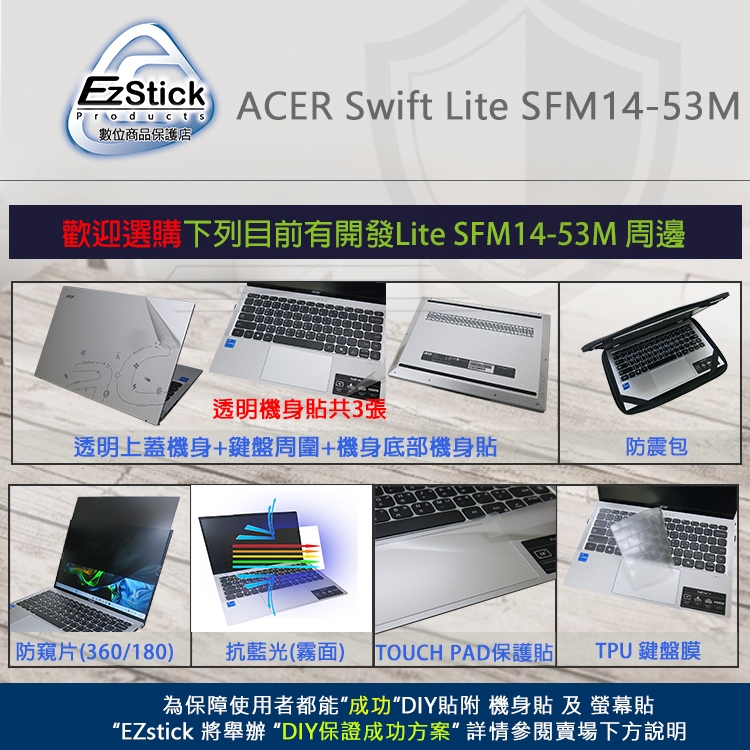 【Ezstick】ACER Swift Lite SFM14-53M TPU 鍵盤膜TPU鍵盤膜|鏡面螢幕貼(加購價)-單購|霧面螢幕貼(加購價)-單購|抗藍光鏡面螢幕貼(加購價)-單購|抗藍光霧面螢幕貼(加購價)-單購|抗藍光防窺片(左右防窺)-單購|抗藍光防窺片(360度防窺)-單購|鍵盤膜+觸控板貼+施工刮板|鍵盤膜+筆電超細纖維布285*196mm|三合一防震包組|透明機身貼(上蓋+鍵盤週圍+底部貼)Keyboard & Trackpad CoversEZstick 3C商品保護賣場