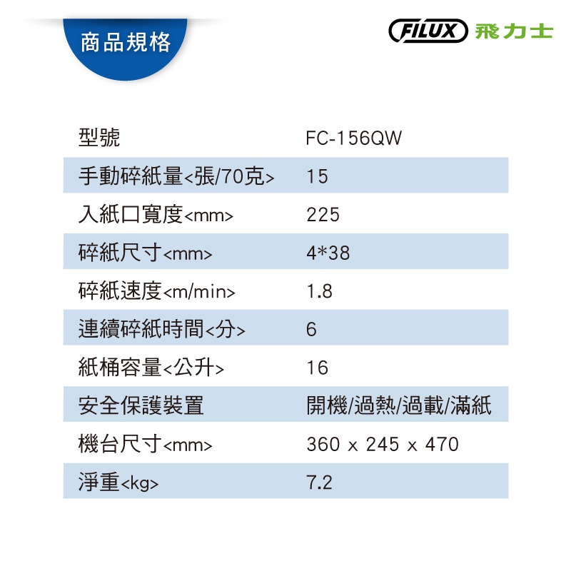 FILUX 飛力士 15 張超靜音短碎狀碎紙機 時尚白 FC156QWFILUX 飛力士 15 張超靜音短碎狀碎紙機 時尚白 FC156QWPaper ShreddersFILUX 飛力士