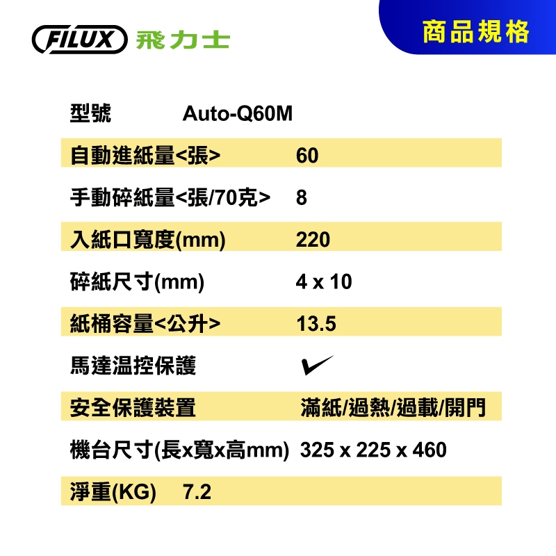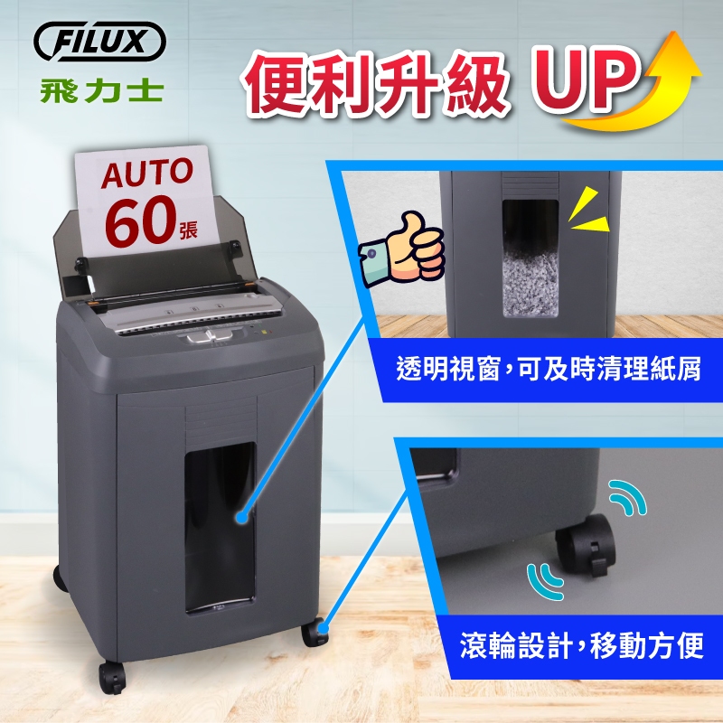 【FILUX 飛力士】免手持免等待全自動60張碎紙機Auto-Q60M (深鐵灰) [原廠]1台Paper ShreddersFILUX 飛力士