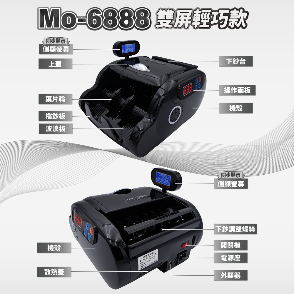 【Co-create 合創】Mo-6888翡翠型 雙屏輕巧款 (送外顯+防塵套+保固一年)|驗鈔機 點鈔機 數鈔機Mo-5688尊爵『外顯+質感黑防塵套』|Mo-5888智慧黑白『外顯+黑防塵套』|Mo-6688鑽石『外顯+質感黑防塵套』|Mo-6888翡翠『外顯+質感黑防塵套』|Mo-8688皇家-黑『外顯+黑防塵套』|Mo-8688皇家-白『外顯+黑防塵套』|Mo-8688皇家黑白『外顯+黑防塵套』Money CountersCo create 合創