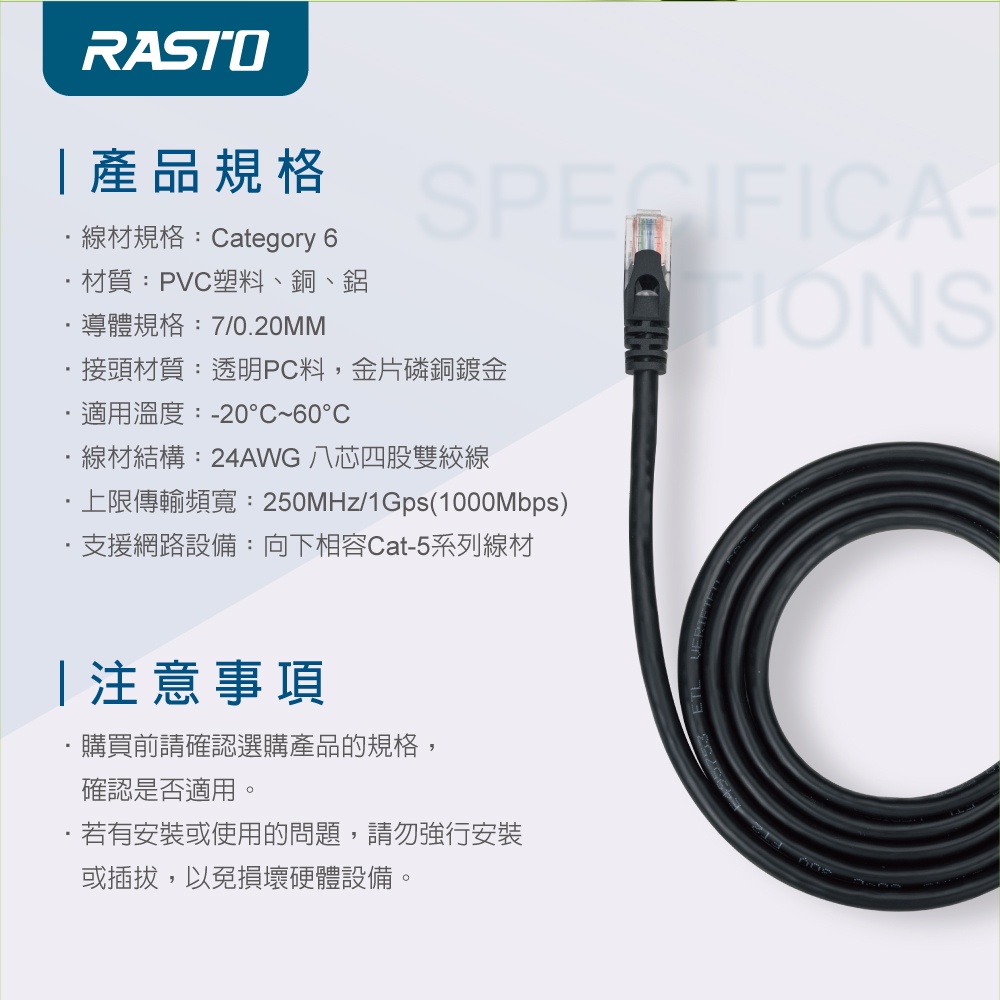 RASTO REC10 超高速 Cat6 傳輸網路線-8MRASTO REC10 超高速 Cat6 傳輸網路線-8MNetwork Cables & ConnectorsE-books 官方旗艦店