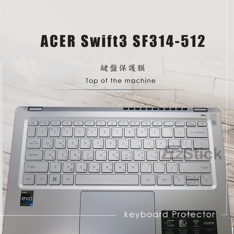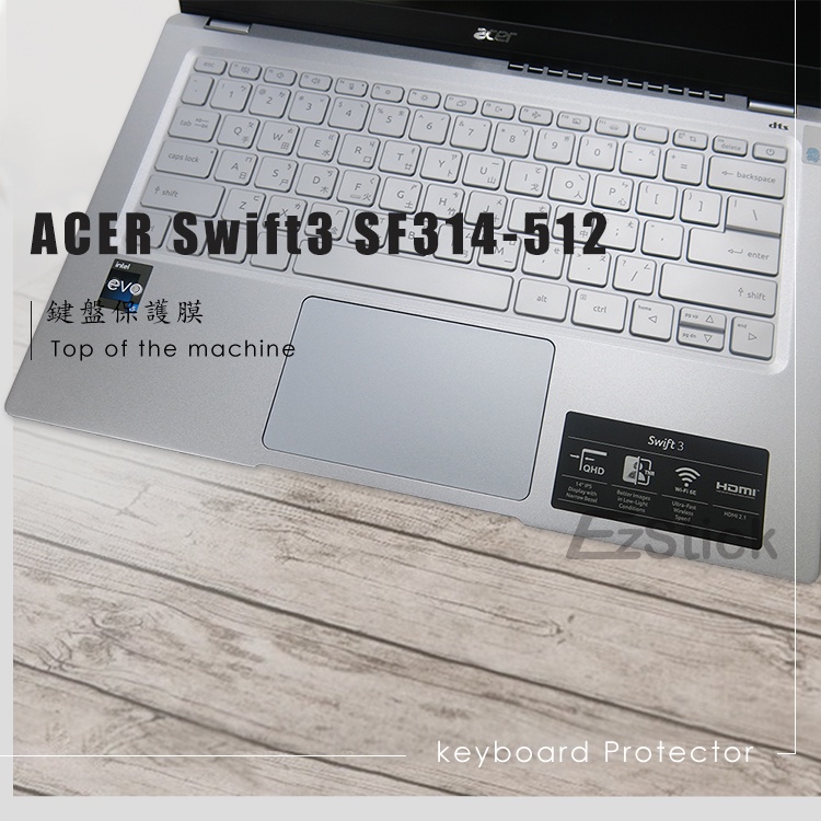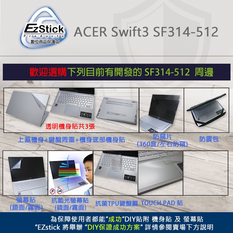 【Ezstick】Acer Swift 3 SF314-512 TPU鍵盤膜|奈米銀抗菌|防水可水洗抗菌TPU鍵盤膜|鏡面螢幕貼(加購價)-單購|霧面螢幕貼(加購價)-單購|抗藍光鏡面螢幕貼(加購價)-單購|抗藍光霧面螢幕貼(加購價)-單購|抗藍光防窺片(左右防窺)-單購|抗藍光防窺片(360度防窺)-單購|鍵盤膜+觸控板貼+施工刮板Keyboard & Trackpad CoversEZstick 3C商品保護賣場