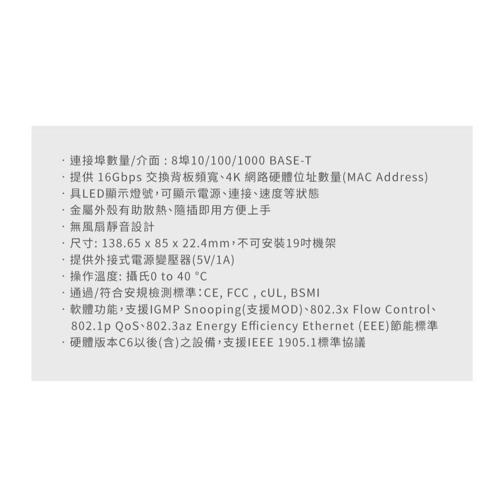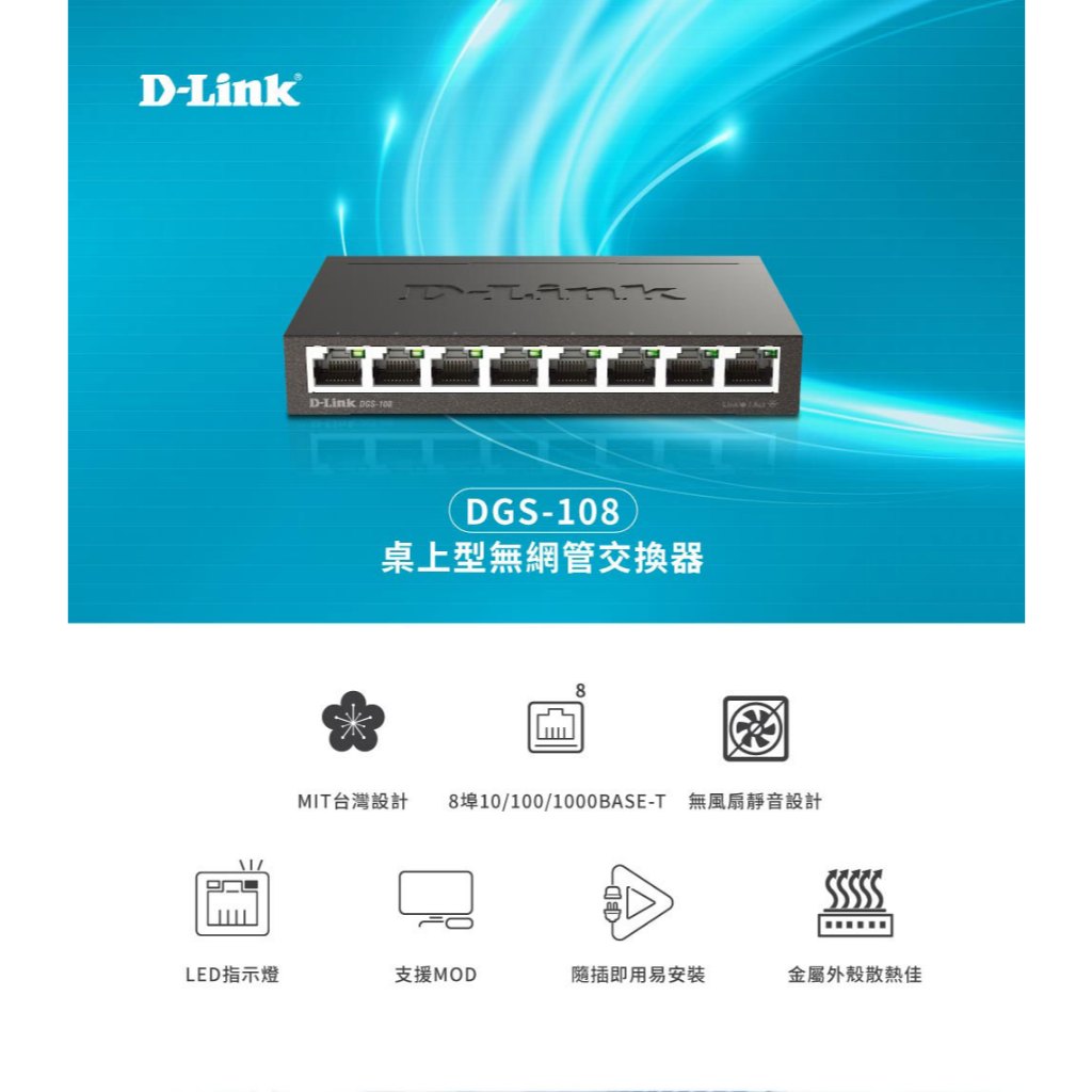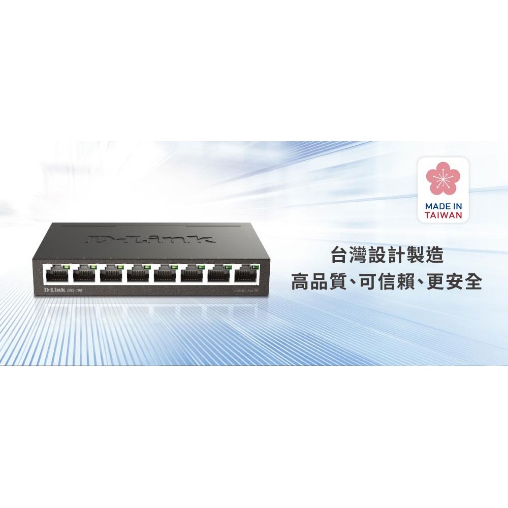 D-Link 友訊 DGS-108 8埠 台灣製造 節能 桌上型 隨插即用 易安裝 乙太網路 網路交換器