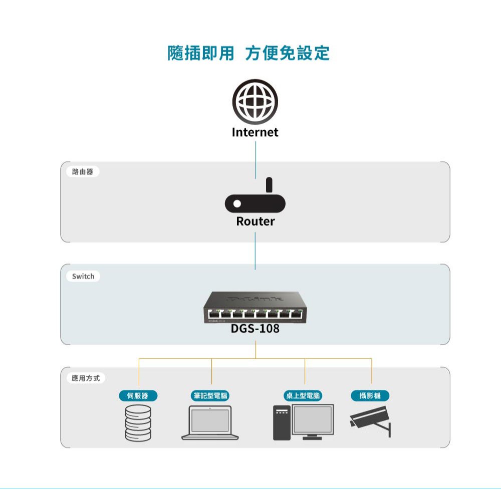 D-Link 友訊 DGS-108 8埠 台灣製造 節能 桌上型 隨插即用 易安裝 乙太網路 網路交換器DGS-108_二入|DGS-108_一入Network Switches & PoED-Link官方旗艦店