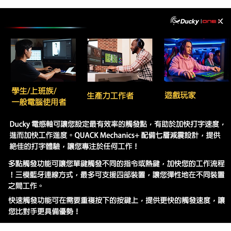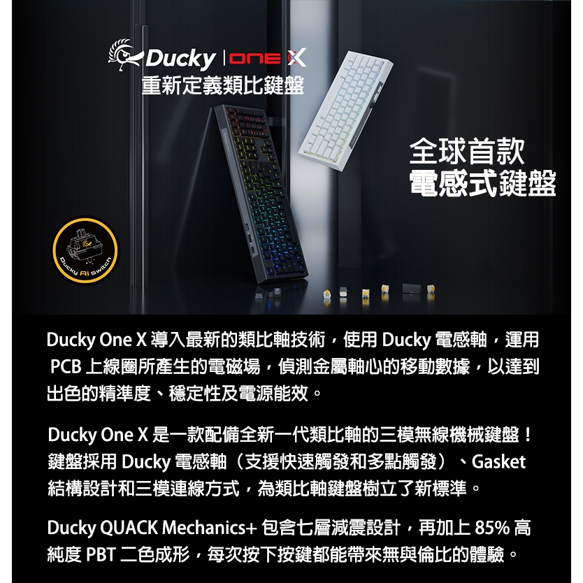 Ducky ONE X 機械鍵盤 三模連線 電感軸 黑色 白色 PBT鍵帽 抗震設計 無線鍵盤 電競鍵盤 遊戲鍵盤ONE X 100%,黑色|ONE X 100%,白色|ONE X 60%,黑色|ONE X 60%,白色KeyboardsDucky 鍵盤 l 官方授權店