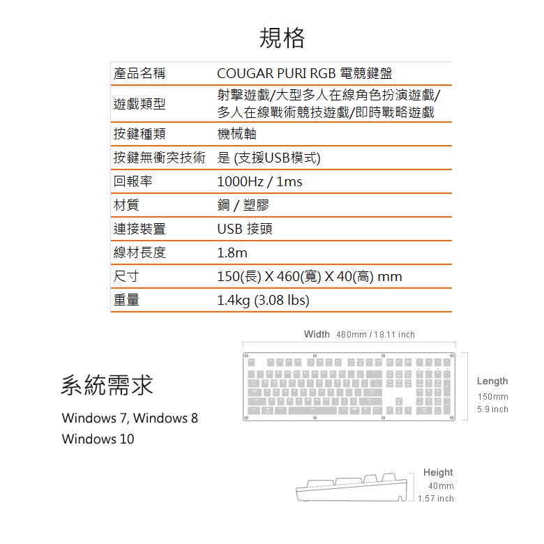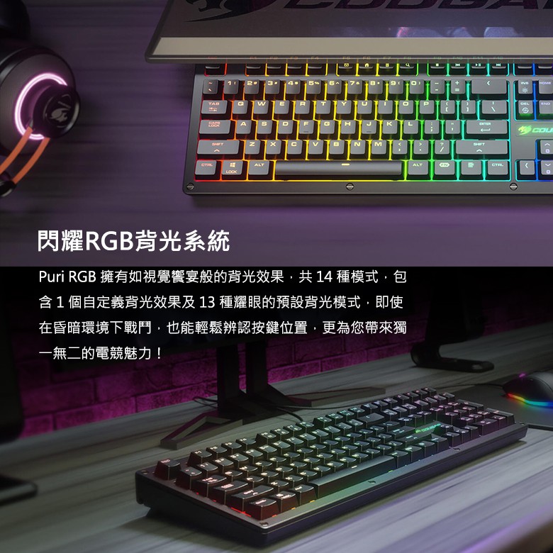 【COUGAR 美洲獅】PURI RGB 磁吸式上蓋機械式鍵盤 – 紅軸、青軸中文版(有注音符號)-青軸|中文版(有注音符號)-紅軸KeyboardsCOUGAR 美洲獅 品牌專賣店