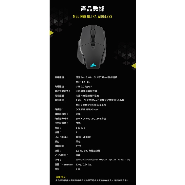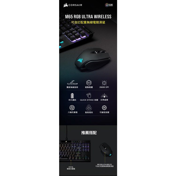 海盜船 CORSAIR M65 RGB ULTRA WIRELESS 電競 無線滑鼠 官方旗艦館黑色|白色MiceCORSAIR 官方授權旗艦店